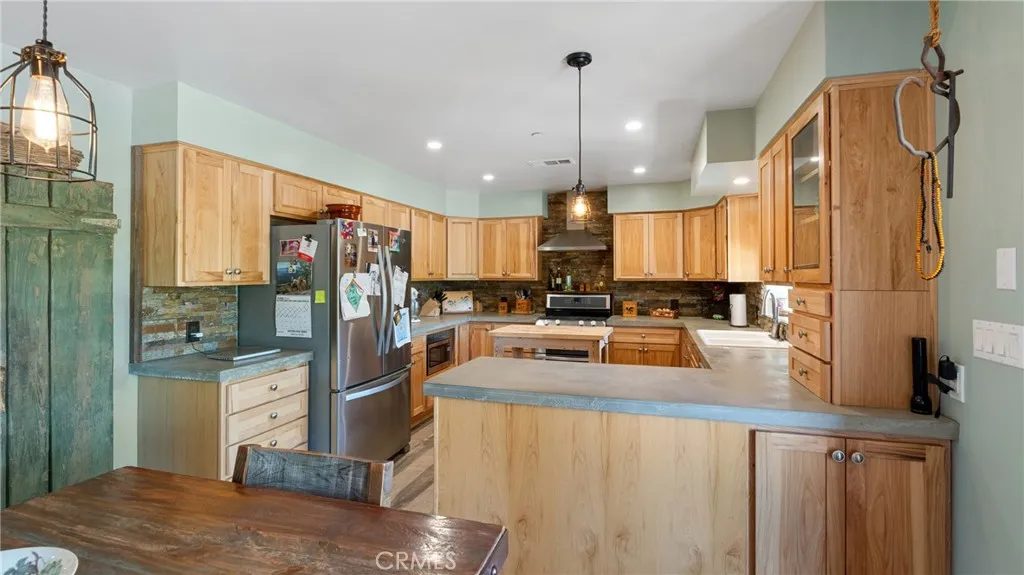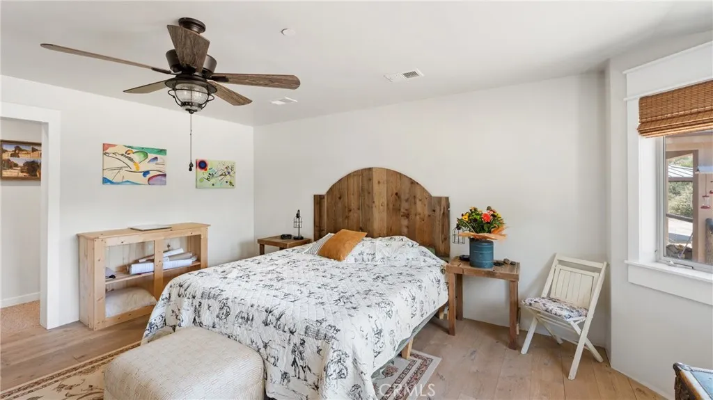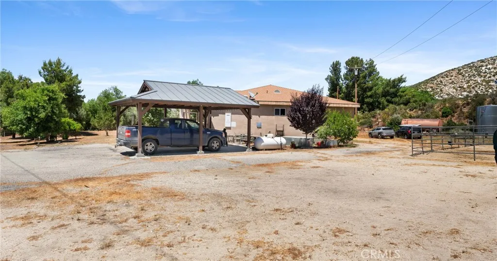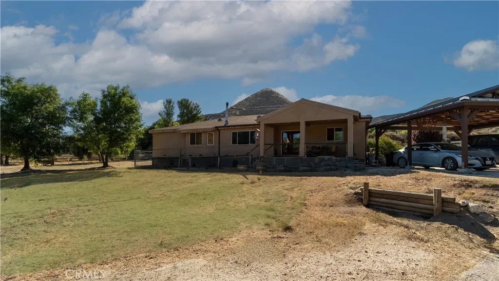Nestled in the serene and picturesque landscape of Acton, this custom-built home from 2015 offers unparalleled privacy and breathtaking views across its expansive 11.51 acres. Designed with modern fire safety in mind, the property is equipped with an interior fire sprinkler system and a fire hydrant on the premises, ensuring peace of mind. Additionally, two 7,500-gallon water tanks provide ample water supply for emergencies. The dual glazed tempered windows further enhance the home's safety features. This 2,238 sq. ft. residence boasts rustic elegance with Douglas fir post and beam accents. The spacious living room features a stack stone wood-burning fireplace with a hearth, perfect for cozy evenings. The kitchen is a chef's dream, complete with custom concrete countertops, under-cabinet lighting, custom cabinets with pull-outs, and a pantry with a charming barn door. The primary bedroom is a sanctuary with French white oak flooring and a private bath featuring a garden tub and a stall shower with tiled accents. Additional amenities include a private dining room, a laundry room with ample storage, and an attached 2-car garage with a work area. The property is a haven for nature lovers, with mature olive trees, a covered patio, a hay barn, a tack room, a pump house, and a horse turnout with an electric solar fence. A seasonal creek adds to the natural beauty of the surroundings. Modern conveniences such as a tankless hot water heater, a house recirculating pump, and a water filtration system ensure comfort and efficiency. This home is not just a residence; it's a lifestyle.