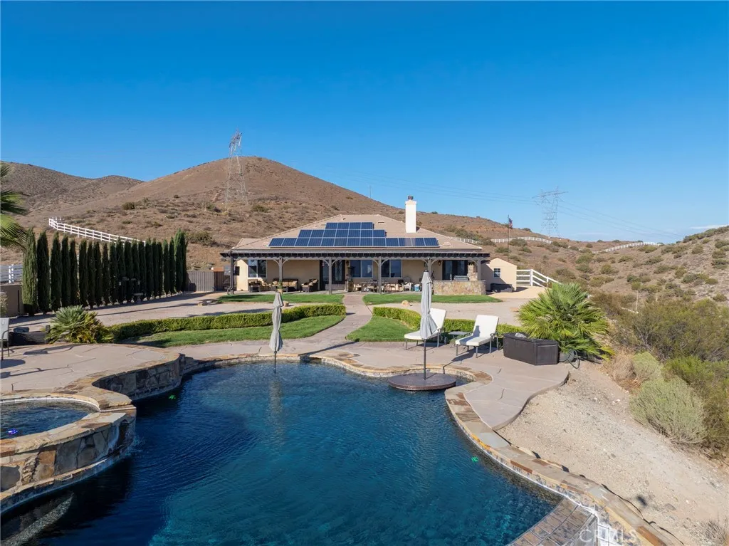 Luxury Meets Privacy at the Top of Star Point Ranch! All new neutral interior paint. Panoramic views! Welcome to your dream retreat in Acton, CA a stunning 5-bedroom, 3-bath estate located in the exclusive Star Point Ranch community. Set on 20 private and fenced acres, this 2,823 sq ft home offers the perfect blend of luxury, seclusion, and breathtaking views. At the end of a long, gated driveway, perched above the neighborhood, this beautifully upgraded home boasts a truly elevated lifestyle. Enjoy an unmatched location, a resort-style infinity pool, paid solar system, solar pool water heater and a fully landscaped property designed for comfort and elegance. The exterior of the house features a custom smooth plaster finish. Room for a large shop with 50 amp power service for RV hookup. Inside, you'll find spacious living areas, modern finishes and thoughtful upgrades throughout. The upgraded kitchen features high end Kitchen Aid appliances and finishes. Custom cabinetry. Open floor plan off kitchen to main living area with fireplace and faux beamed ceiling The primary retreat features a fireplace, exterior entry and the ensuite bathroom offers separate shower and soaking tub with ample closet space. Large formal dining room and oversized living room with fireplace. Step outside to your outdoor kitchen oasis, complete with a built-in BBQ, smoker and wood-fired pizza oven and refrigerator perfect for entertaining under the stars. Whether you're lounging poolside, enjoying the sunsets, or hosting gatherings, this home offers peaceful privacy without sacrificing convenience