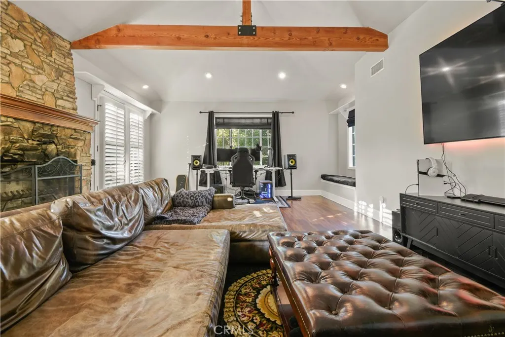 Set on over an acre, this private and peaceful property offers a true sense of escape while still being just minutes from Malibu with convenient freeway access to the city. Inside, vaulted ceilings with an exposed wood beam and inviting fireplaces create a warm, welcoming atmosphere. Thoughtful updates throughout include a remodeled kitchen, a beautifully renovated primary bathroom, and updated flooring, blending modern style with timeless character. The versatile floor plan includes one full bedroom downstairs, with a spacious primary suite and two additional bedrooms upstairs, several featuring access to private outdoor decks that enhance the homes indoor-outdoor lifestyle. Sunlight fills the open, flowing layout, seamlessly connecting the kitchen to comfortable living and entertaining spaces. Expansive wrap-around decking with a hot tub invites effortless relaxation and entertaining, while additional highlights include a three-car garage, ample driveway parking, an indoor laundry room, a formal dining room, and generous grounds with potential for an ADU or pool. Private, peaceful, and thoughtfully upgraded. This is where your next chapter begins.
