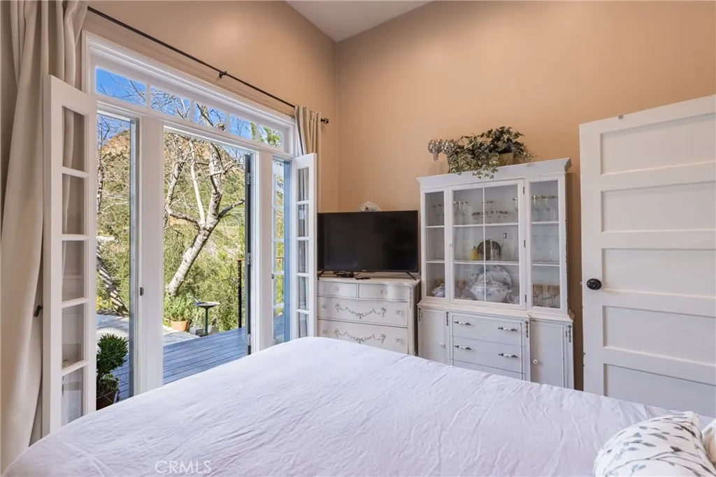 Nestled within the lakeside community of the Santa Monica Mountains, this romantic and serene retreat captures breathtaking deck views overlooking Malibou Lake, Sugarloaf Mountain, and the surrounding ranges. Tucked at the end of a quiet cul-de-sac, the setting offers exceptional privacy, tranquility, and a true connection to nature. Recently updated with a new roof, new flooring, a beautifully remodeled primary bath, new composite decking, and a newly constructed guest yurt, the home blends timeless rustic charm with modern comfort. Light-filled interiors feature soaring cathedral ceilings, rich wood floors, French doors throughout, and an open-concept living and dining area anchored by a charming freestanding wood-burning stoveperfect for cozy evenings and relaxed entertaining. The spacious kitchen is designed for both everyday living and hosting, offering abundant cabinetry, quality finishes, and seamless flow to the main living spaces. The flexible floor plan includes multiple bedrooms and baths, highlighted by a serene primary suite with its newly updated spa-style bath. Nearly every room enjoys captivating lake or mountain views, while expansive wraparound composite decks provide the ideal setting for morning coffee, sunset gatherings, or simply soaking in the peaceful surroundings. A truly special highlight of the property is the new 314 s.f. circular guest yurt, a striking addition that elevates the lifestyle offering. Thoughtfully designed and tucked away for privacy, the yurt is ideal as a guest house, meditation sanctuary, creative studio, wellness retreat, or pr