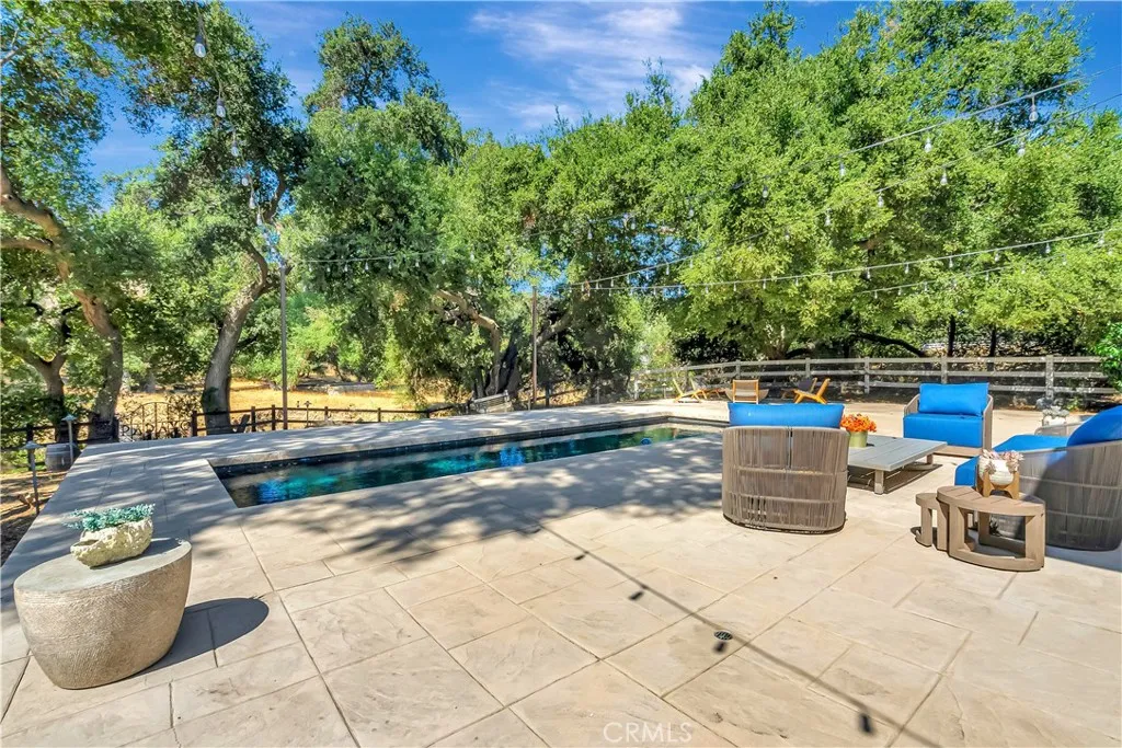 Agoura Hills estate on 2.25 gated acres. Welcome to your private sanctuary in Old Agoura's equestrian community that integrates with nature. Built in 2018, this luxurious residence features hand-finished Barnwood floors, and expansive glass walls flooding the home with natural light. The gourmet kitchen boasts Wolf and Sub-Zero appliances, while the primary suite offers a spa-inspired ensuite, his/hers closets, dual sinks and private balcony with sauna overlooking lush landscapes. Indoor theater/rec room, gym and a downstairs bedroom make this a home equipped for everything. Exceptional outdoor amenities , serene yoga area, and a rope bridge over Chesebro Creek leading to a private glamping retreat or serene yoga area. With resort-style entertaining spaces, room for horses, and direct trail access, this estate epitomizes California outdoor living. Automated smart home controls lighting, irrigation, security, pool, and sound systems are built in. Minutes from Malibu, Calabasas, and Westlake Village. A rare opportunity to own this spectacular retreat.