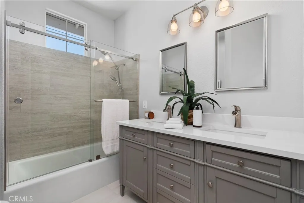 WELCOME HOME! Step into Luxury behind the gates of one of Aliso Viejos most coveted communities. This isn't just a remodel; IT'S A COMPLETE TRANSFORMATION. Move-In Ready! Every inch of this home has been reimagined and rebuilt with $200,000 in upscale enhancements, it has the feel of a new custom construction in an Awesome location with low HOA dues! From the moment you arrive, the fresh curb appeal is undeniable, boasting a brand-new garage door, striking outdoor lighting, and a modern front door that sets the tone for whats inside. The interior is a showcase of thoughtful design and premium craftsmanship. Custom kitchen and bathroom cabinetry pair seamlessly with sleek new Quartz countertops and brand new appliances, creating a space thats as functional as it is beautiful. Rich hardwood flooring flows throughout, complemented by custom wood shutters and freshly painted walls that bring warmth and cohesion to every room. Every door inside the home has been replaced with elegant wood finishes, and the bathrooms have been completely reimagined with contemporary fixtures and finishes. The home's infrastructure has been completely modernized with PEX piping for long-term reliability. Beyond the impeccable interiors, the lifestyle here is equally exceptional. Residents of Village Cottages enjoy access to community pool, world-renowned beaches, Blue Ribbon Schools, scenic trails, upscale shopping and dining. fully rebuilt residence that combines timeless design with modern luxury. Properties like this are few and far between.