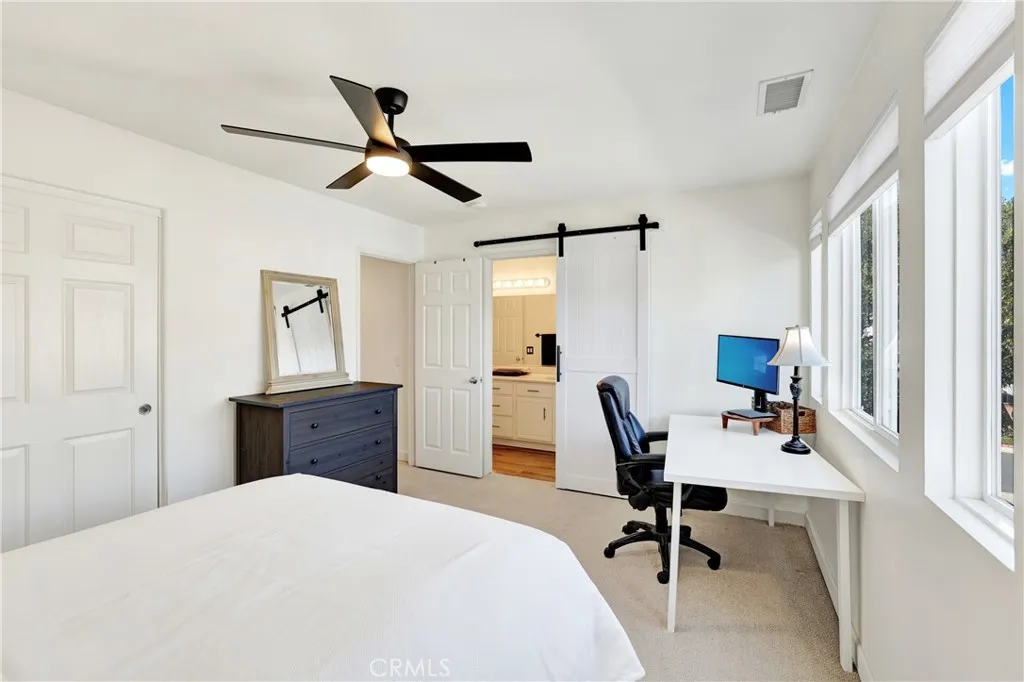 Welcome to the highly coveted Twelve Picket Lane community of Aliso Viejo! Discover a seamless blend of contemporary elegance, thoughtful redesign, and everyday comfort in this beautifully updated home. Step onto the charming front porch of this detached residence, where no one is above, below, or sharing a common wall. As you enter, youre greeted by tall ceilings and large windows that fill the home with an abundance of natural light. The downstairs living spaces are thoughtfully crafted with luxury vinyl flooring, an electric fireplace in the voluminous living room, and a gourmet kitchen featuring newer stainless-steel appliances. Youll also find a remodeled powder room, a ceiling fan in the dining room, and a custom removable stair runner. Upstairs, the custom stair runner leads to luxurious Berber carpeting, contemporary ceiling fans in every bedroom, and updated lighting and flooring in both the secondary and primary bathrooms. The secondary Jack and Jill bathroom is further enhanced with new fixtures and a contemporary barn door. Enjoy true indoor-outdoor living as you step outside into a transformed private patio featuring charming red brick and upgraded pet-friendly turf. Whether youre unwinding in the spacious living room, relaxing in the afternoon sun on the reimagined patio, or sitting on the front porch overlooking the sparkling community pool, every area of this beautiful home is infused with style and comfort. If this is what youve been looking for, youve come to the right place!