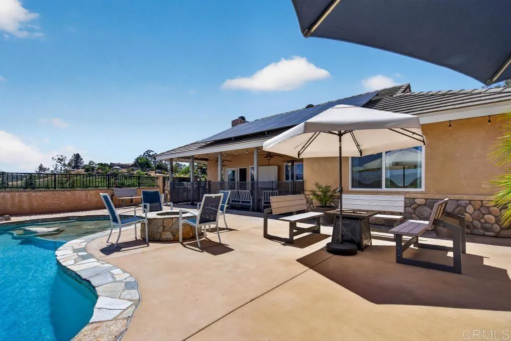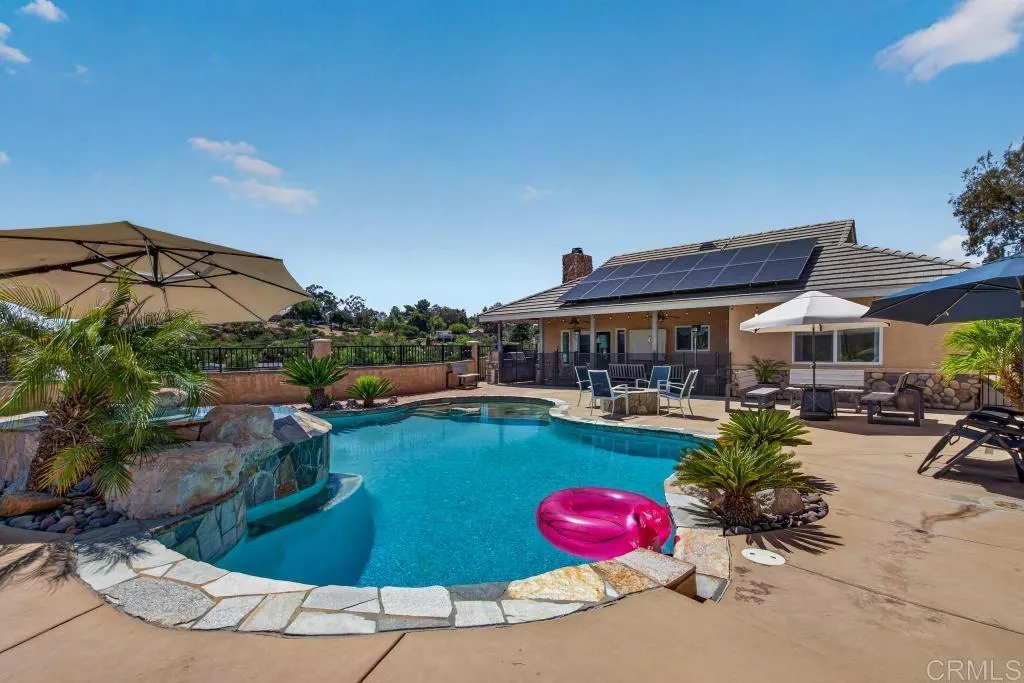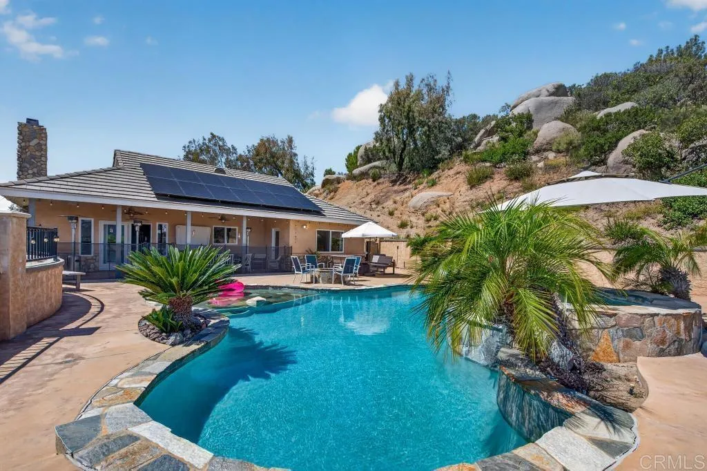 If youve been waiting for that private, usable acreage with all the right upgrades already in place, this is it. Set on 2.5 acres with sweeping mountain views, this 4 bed, 3 bath home brings together space, functionality, and the kind of backyard you usually only see at resorts. Inside, youre greeted by a formal foyer that opens into a bright, open-concept living space designed for both everyday living and hosting. The layout just makes sense. Youve got a Jack & Jill setup for the secondary bedrooms, and a spacious primary suite that actually feels like a retreat with the fireplace, walk-in closet, soaking tub, the whole deal. Step outside and it really separates itself. Resort-style pool with Baja entry. Elevated spa. Built-in BBQ. Firepit. Plenty of room to entertain, spread out, and enjoy the property the way its meant to be used. Add in the oversized 3-car garage, tons of parking, dog run, and low-maintenance turf, everything here is dialed in. This property checks all the practical and convenient boxes too with paid solar and a transfer switch for a generator, which is huge for this area. To top it off, the home is located within the Old Ranch community, offering access to Palo Verde Lake,where youll find fishing, a beach area, swim decks, docks, playground, shaded grassy areas, indoor and outdoor banquet spaces, horse trails, tennis courts, and more. Its a lifestyle element that truly sets this property apart. Bottom line, this is the kind of property people move to Alpine for. Space, privacy, views, and a home thats been well cared for and enjoyed. If youre looking t
