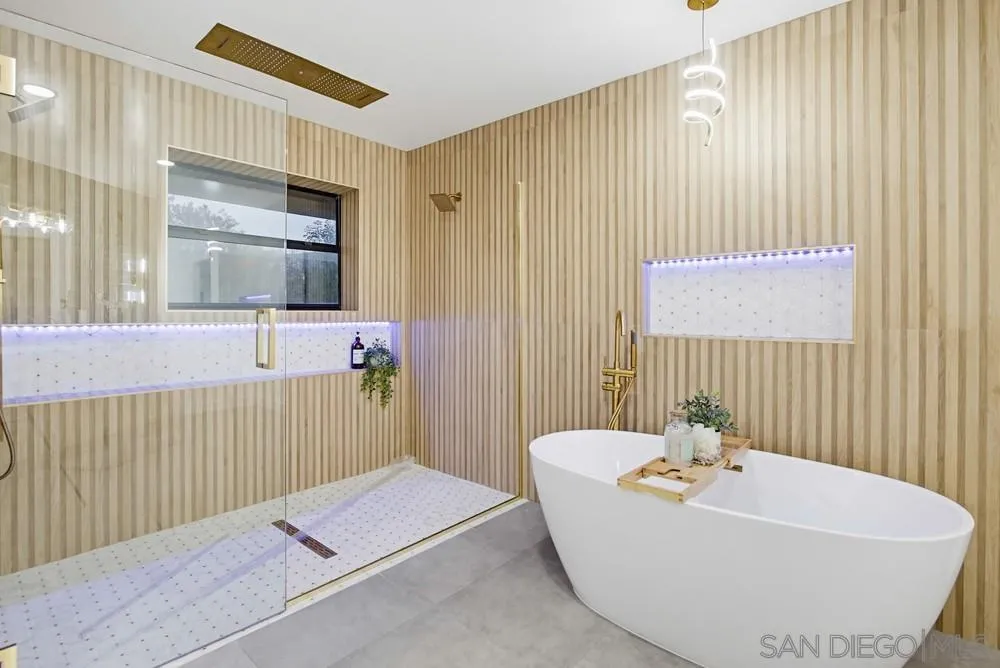 Offering privacy, scale, & resort-style living experience. Set on a spacious 2 acre lot w/ panoramic views, home has been transformed w/ modern design, high-end finishes, & an open layout filled w/ natural light. Expansive living spaces create seamless flow ideal for both everyday living & entertaining. The centerpiece of property is its indoor-outdoor living space w/ it's own dedicated HVAC. Private outdoor retreat amenities feature resort-style pool, water feature, BBQ area, putting green, & multiple areas...