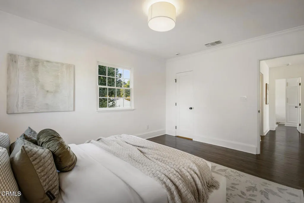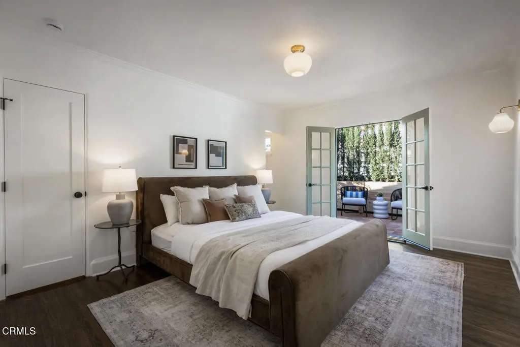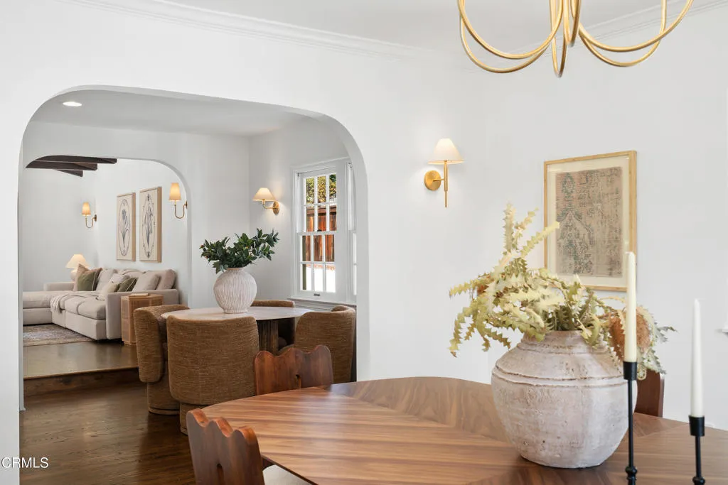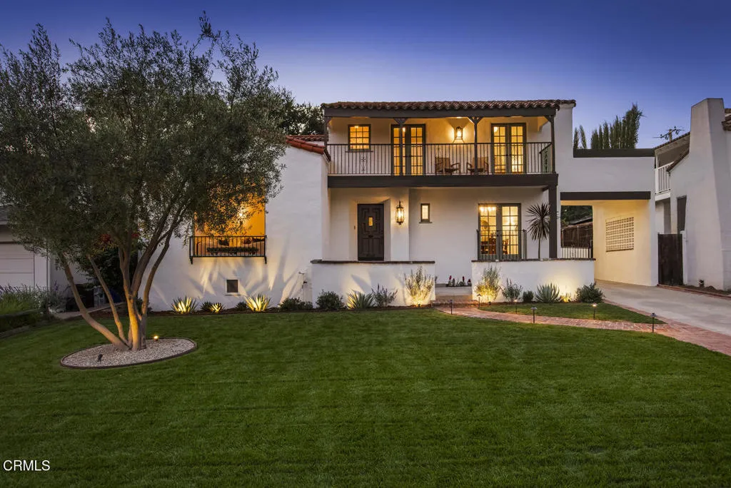 This stunning 1929 Spanish Colonial Revival has been beautifully restored, blending historic character with modern luxury. Set on a generous Altadena lot, the 4-bedroom, 3-bathroom home showcases arched doorways, vaulted ceilings with exposed beams, Malibu tile accents, and fireplaces that reflect its Spanish charm. A large window in the living room fills the space with natural light and frames views of the front yard, highlighted by a mature olive tree. The gourmet kitchen offers custom cabinetry with quartz countertops, Viking appliances, and a custom wet bar with walnut shelving. The dining room features a Juliet balcony, while the primary suite enjoys a private balcony with mountain views--creating inviting spaces to enjoy both morning light and evening sunsets. The main level includes a bedroom and bathroom with a shower, while upstairs provides three additional bedrooms and two bathrooms, including the primary suite with a spa-inspired bath and mountain views. Modern updates include hardwood floors, marble and porcelain finishes, frameless glass showers, premium fixtures, recessed lighting, fully updated plumbing and electrical, and dual HVAC systems with Nest control. Professionally designed landscaping with a flagstone courtyard, ambient lighting, and lush greenery creates a private retreat just moments from Altadena's hiking trails, parks, shopping, and local eateries. This turnkey residence offers both classic beauty and a lifestyle of refined elegance.