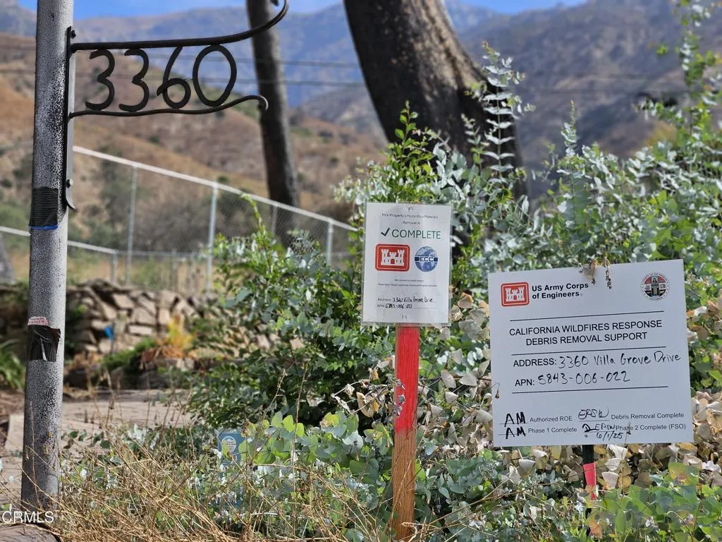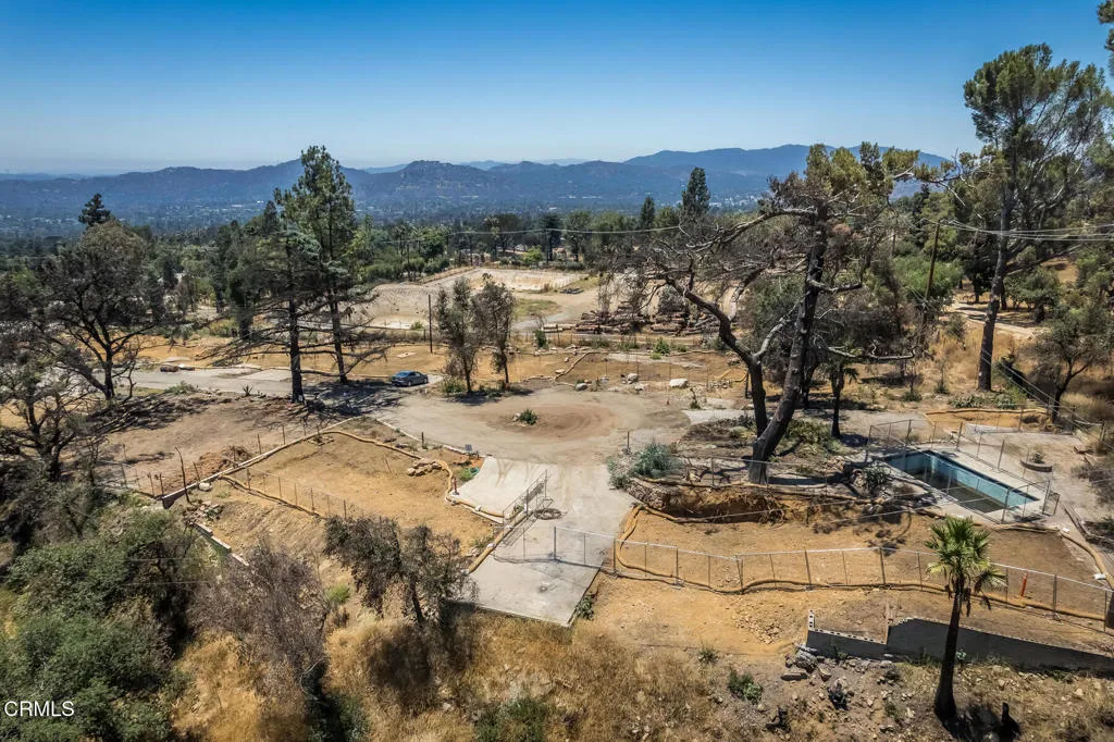 Experience this one-of-a-kind 14,500sf lot on a private street at the edge of the Angeles National Forest, overlooking the entire valley. Behold a distant view of downtown Los Angeles and even the glint of ocean on the clearest of days. Prior to the Eaton fire, this had been a grand 4 bedroom, 2 bath, stately two-story cabin built in 1932. This location is the 'jewel in the crown' of the cul de sac, adjacent to the Cobb Estate and Sam Merrill Trail. With sloping views and buttressed by the mountains, you can imagine yourself creating your personal retreat, relaxing here and feeling tucked away. The in-ground pool is still intact, and the lot clearance and debris removal have been certified complete by the EPA and Army Corps of Engineers. Lot has two driveways. One on the left side of pool area, and one on the right side of the cleared space. Much of the mature landscape remains for you to tend and expand. Bring your dream to manifest here...