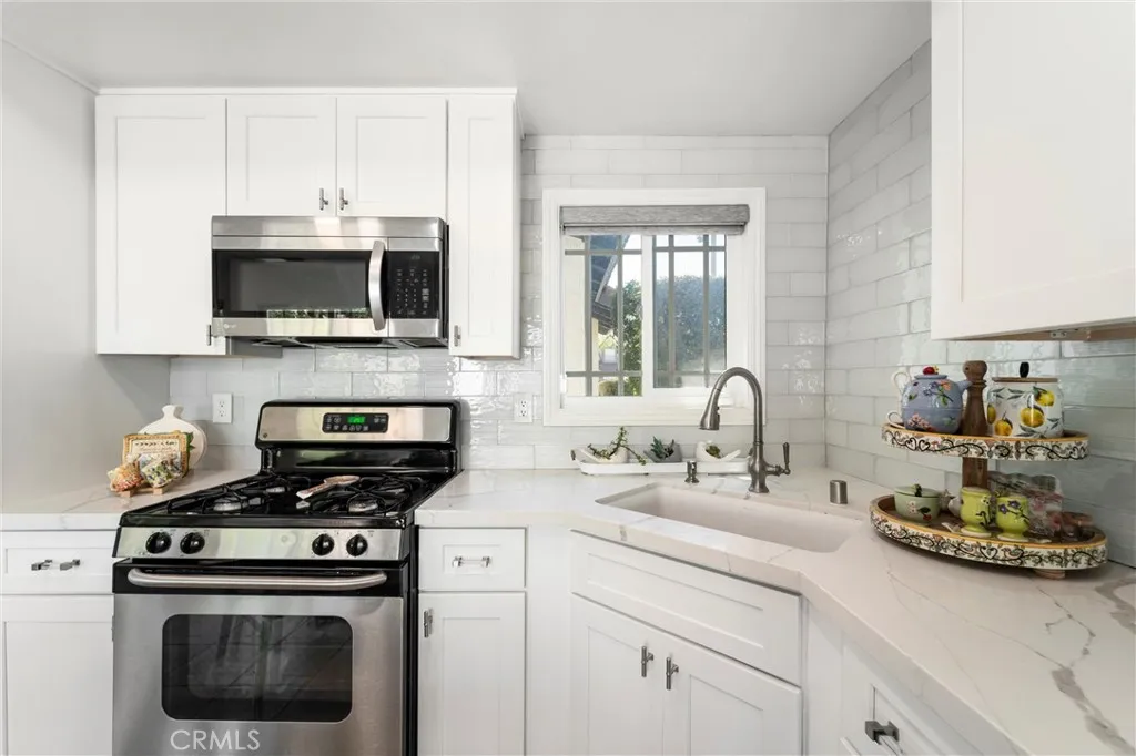 Welcome to 210 S. Larkwood in the "Bel Air" neighborhood of Anaheim Hills! This stunning single-story home sits on a spacious corner lot and is move-in ready. Featuring three bedrooms and a versatile den that can serve as a 4th bedroom or office, this bright and immaculate home is filled with natural light. It has been recently updated with stylish touches like quartz countertops, recessed lighting, silhouette window treatments, plantation shutters, and fresh paint inside and out. The living and dining rooms boast cathedral ceilings and recessed lighting, white modern barn doors add charm to the den, making it perfect for a home office. The primary bedroom opens directly to the backyard, with an updated bathroom featuring double sinks and chic tile work. The secondary bathroom includes a new glass shower enclosure and sink. The kitchen is equipped with quartz countertops, a designer backsplash, white solid wood cabinetry and stainless-steel appliances. The family room highlights a designer quartz fireplace with a floating beam mantle. Both the kitchen and family room lead to a fabulous entertainers backyard with a beautiful paver patio and plenty of space for plants and a lawn. Conveniently located near the 241 and 91 freeways, Costco, restaurants, parks, and top-rated schools, this home truly has it all!