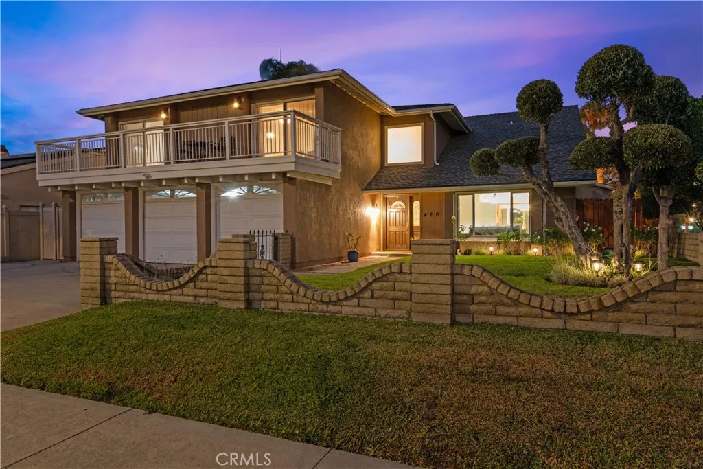 At 420 S Rolling Hills Pl in Anaheim, this five-bedroom, three-bath single-family home with a pool blends everyday comfort with room to gather. Vaulted living and dining connect to a separate family room and a granite kitchen with beautiful wood cabinetry, recessed lighting, and a wide window overlooking the backyard. Outside, enjoy a covered patio with string lights, an expansive pool deck, and block-wall privacy. Upstairs, the primary suite with an ensuite bath is joined by three additional bedrooms and an extra-large bonus room ideal for media, office, or play. Further highlights include indoor laundry, a front-view balcony, a three-car attached garage, and an oversized driveway. Convenient Anaheim Hills area location near Nohl Canyon Elementary and Canyon High. Close to parks, shopping, dining, and freeway access.