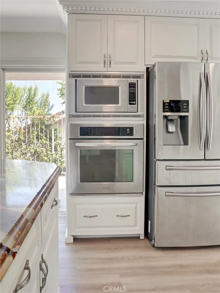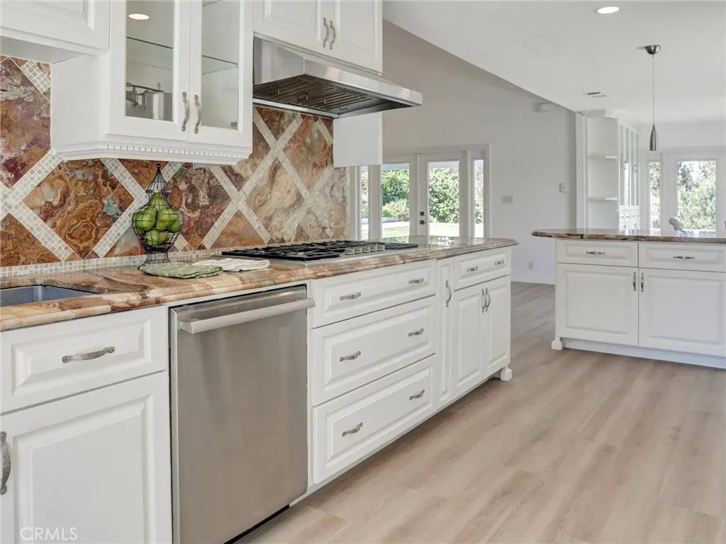 Welcome to Your Anaheim Hills Retreat! Tucked away on a spacious 13,806 sq ft flat lot in one of Anaheim Hills most desirable neighborhoods, this beautifully updated 4-bedroom, 3-bathroom home offers 2,845 sq ft of stylish living with gorgeous city light and mountain views. A spacious front patio and elegant double-door entry welcome you into an open, light-filled interior featuring new luxury vinyl plank flooring throughout. The completely remodeled bathrooms showcase modern design and quality finishes, while generous living and dining spaces provide comfort and flow for both everyday living and entertaining. The heart of the home is the stunning chefs kitchen, complete with custom soft-close cherry wood cabinetry (painted white), dramatic petrified wood quartz countertops, and a island perfect for gatherings. Upstairs, two of the bedrooms open to a brand-new balcony, ideal for enjoying your morning coffee or sunset views. Outdoors, unwind beneath the new pergola-covered patio or enjoy the peaceful garden setting with fruit trees, a kitchen garden, and blackberry vines. With a fully owned solar system, say goodbye to electric bills while enjoying sustainable living while reducing your carbon footprint. The 3-car garage includes a dedicated laundry area with a new dryer (no washer), offering extra storage and utility space. Low HOA dues of just $33/month grant you access to resort-style community amenities including a heated pool, lighted tennis and pickleball courts, and BBQ/entertaining area. This is the perfect blend of modern comfort, scenic beauty, and community living