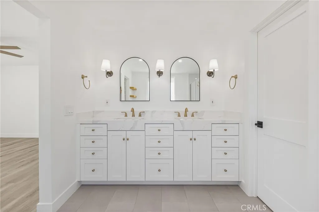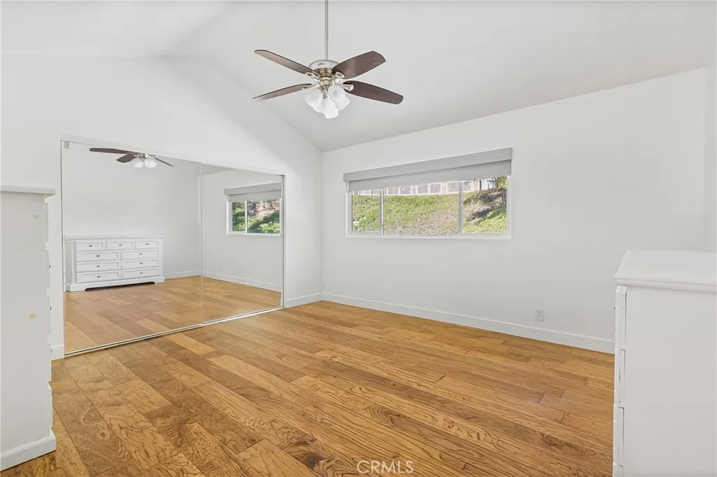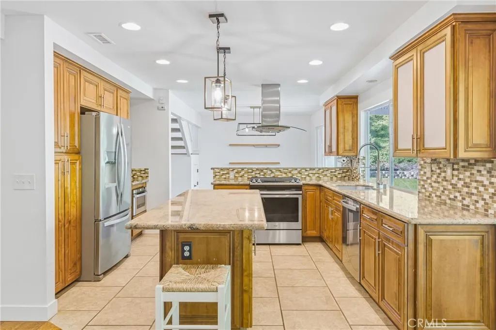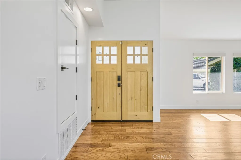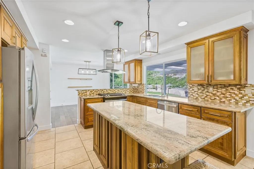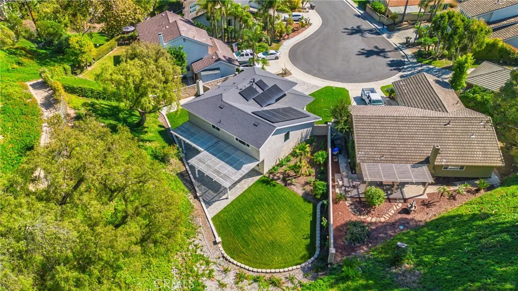 Welcome to this stunning, turnkey four-bedroom home on an expansive pie-shaped lot at the end of a quiet cul-de-sac in the heart of Anaheim Hillsclose to top-rated schools, shopping, dining, and convenient freeway access. Perfectly remodeled inside and out, this home blends modern sophistication with timeless comfort in a prime location. Step through custom wood double entry doors into a bright, open floor plan with soaring vaulted ceilings and an abundance of natural light. The spacious living and family rooms feature a beautiful stone fireplace and seamless flow into the remodeled kitchenan entertainers dream with granite slab countertops, full-height custom stone backsplash, rich wood cabinetry, stainless steel appliances, a large breakfast counter, and custom range hood. Recessed lighting and new contemporary fixtures enhance the inviting atmosphere throughout. Extensive hardwood flooring runs across both levels, accented by new baseboards, door casings, and hardware. The home includes energy-efficient dual-pane windows, custom window coverings, and ceiling fans for year-round comfort. A conveniently located indoor laundry room connects directly to the finished three-car garage with sectional roll-up doors. Upstairs, the reimagined primary suite offers a luxurious spa-inspired retreat featuring a soaking tub, walk-in shower with multiple shower headsincluding a rain showerframeless glass enclosure, and custom stone dual vanity. A large walk-in closet with built-in cabinetry completes this elegant space. The exterior is equally impressive, boasting a limestone-clad faade