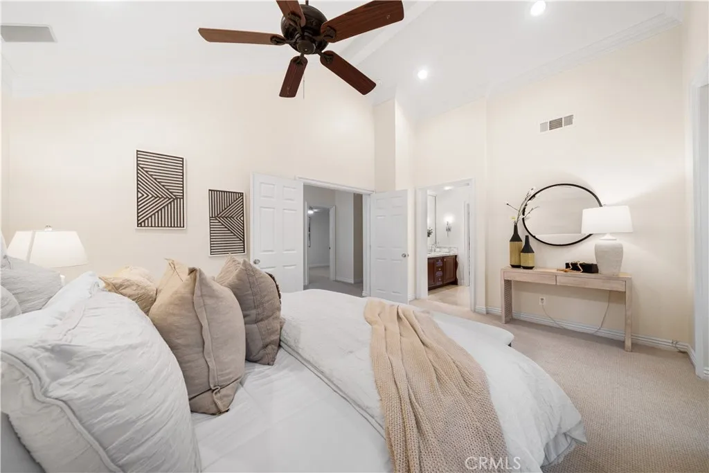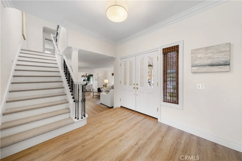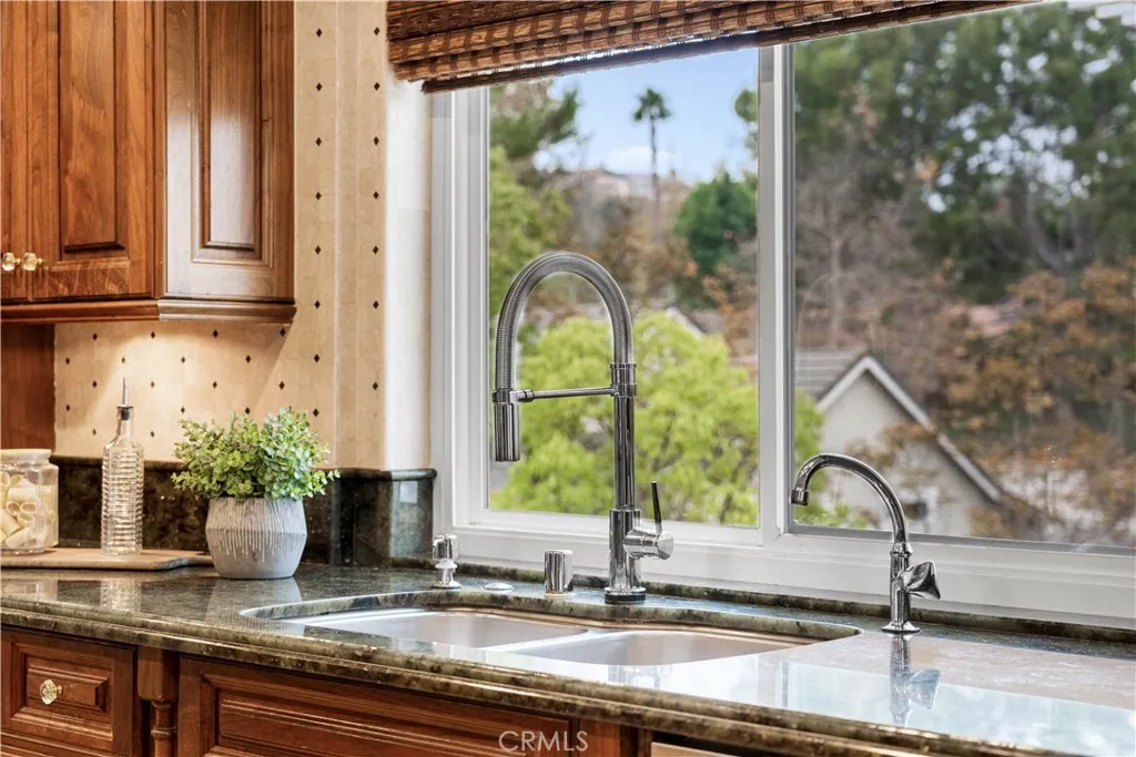 ***BEAUTIFUL DREAM HOME ON A QUIET CUL-DE-SAC STREET IN THE PRESTIGIOUS ANAHEIM HILLS *** This custom home showcases meticulous upgrades, including new luxury vinyl flooring and paint throughout, blending both modern and traditional elegance. A double-door entry opens to the formal living and dining rooms, featuring a built-in bar, extensive use of wainscoting, crown molding, casings, and baseboards, and offering beautiful greenbelt views. The cozy Family Room features a gas fireplace and offers views of the backyard. The well-appointed kitchen features stunning wood cabinetry with glass fronts, granite countertops, a Viking Stove and pot filler, bar seating, and a nicely sized eating area for family dinners. A sophisticated powder room with stone counters and a custom backsplash is perfect for your guests. The second level opens to a wonderful primary suite featuring a double-door entry, high ceilings, recessed lighting, and a ceiling fan. The primary bathroom features stunning marble flooring and countertops, along with dual sinks and a walk-in closet. An impressive leaded glass door offering privacy opens to a gorgeous walk-in steam shower featuring multiple shower heads. Two additional bedrooms, each with a mirrored wardrobe closet, share a bathroom featuring granite counters and a tub/shower combo. A private 4th bedroom/office with beautiful outdoor views completes the second level of this tasteful and well-maintained home. Enjoy hours of outdoor entertainment in this spacious yard, featuring a large patio area and a huge greenbelt area. The two-car garage features bea