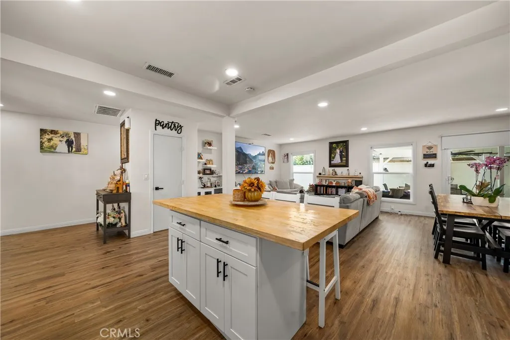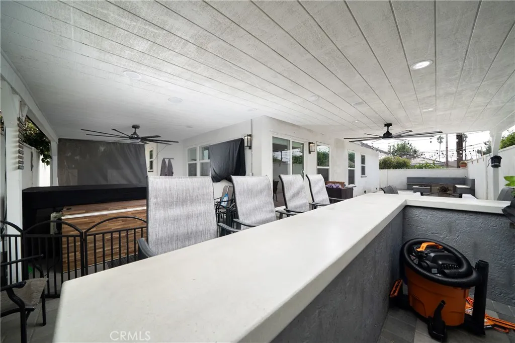 Upgraded & Remodeled home - Inside & Out!!! Enjoy this open concept floorplan with luxury vinyl wood floors, quartz countertops, large butcher block kitchen island with bar seating, shaker cabinets, recessed lights, designer finishes, ample natural light, 2 year old plumbing, new tankless water heater, new electrical panel, front door combo pad, and more! The expanded baths are visually stunning. Oversized driveway is lined beautifully by blooming white roses, and gives you plenty of space for extra parking and usability. Low maintenance front yard with turf, and a fruitful lemon tree. You're sure to make lasting memories in the back which has been completely transformed into a relaxing entertainers dream, including, Large fire pit area, wraparound covered patio which has been wired with recessed lighting, speakers, and brand new ceiling fans; full barbeque/grill with kitchenette area, cooler fridge, new sink, outlet, and single burner stovetop. The brand new jacuzzi is negotiable, it has not been installed, filled or used. You will enjoy this quiet, family-friendly neighborhood, with easy freeway access, close to dining and all entertainment needs!