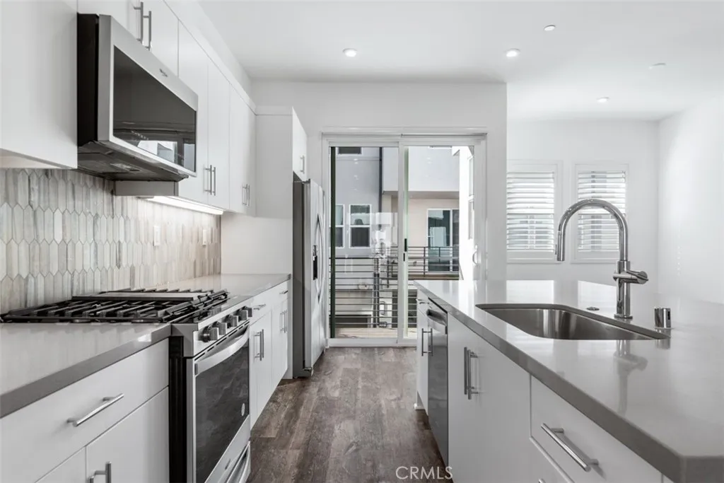 Stunning Modern Townhome in Gated Anaheim Community Welcome to this beautifully designed, modern 4-bedroom, 3.5-bathroom townhome, located in a highly sought-after gated community in Anaheim. Boasting a spacious, open-concept floor plan, this home effortlessly combines contemporary luxury with practical living. The inviting entrance leads to a downstairs bedroom with a private bath and convenient access to the attached two-car garage. Upstairs, enjoy a bright and airy Great Room, complemented by a gourmet kitchen featuring a large center island, abundant counter space, and a walk-in pantry. The separate dining and living area opens to a private outdoor balcony, perfect for relaxation and entertaining.The upper-level primary suite offers a walk-in closet and a spa-like bathroom with a luxurious shower. Additional bedrooms feature generous closet space and share a well-appointed bathroom. Step outside to the rooftop deck, ideal for hosting guests or enjoying panoramic views.Located in the heart of Orange County, this home is just minutes from world-renowned attractions including Disneyland, the Honda Center, and Angel Stadium. With easy access to major freeways, transportation hubs, top medical centers, and esteemed colleges, this property combines convenience with luxury living.