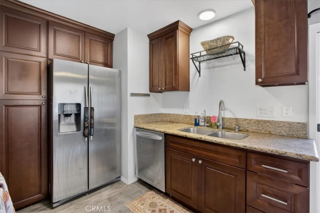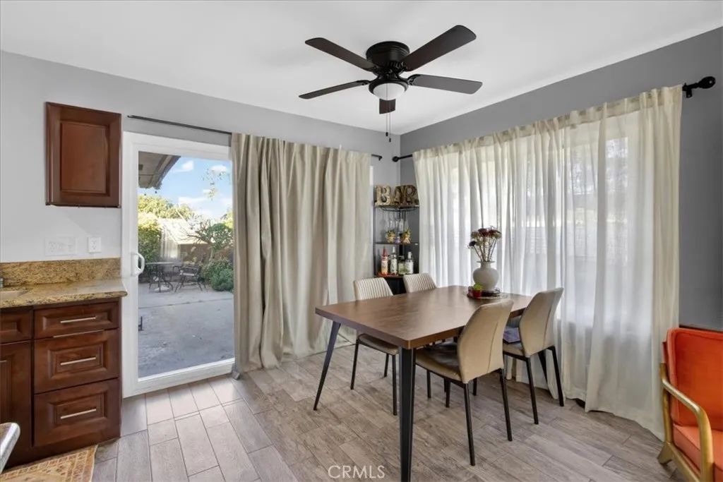 Great opportunity to own in a private, centrally located community near Buena Park Mall! This single-level attached PUD sits on a corner location and offers comfortable living with thoughtful upgrades throughout a great option for buyers looking for an easy, move-in ready home. The layout is practical and inviting, featuring direct access from the oversized two-car garage into a private yard and patio with vinyl fencing a nice space to relax, enjoy morning coffee, or spend time outdoors. The home has been recently remodeled with ceramic tile flooring throughout, updated kitchen cabinets with granite countertops, stainless steel appliances, refreshed bathrooms, and fresh interior paint. Dual-pane windows and two large sliding glass doors bring in plenty of natural light and open to the patio area. Central A/C and a ceiling fan help keep the home comfortable year-round. The community includes a gated pool and clubhouse, large greenbelt areas, and a public park with sports facilities right next door. Low monthly HOA dues cover roofing, exterior paint maintenance, landscaping, and community amenities. Convenient access to the 91 and 5 freeways makes commuting, shopping, and dining simple and accessible.