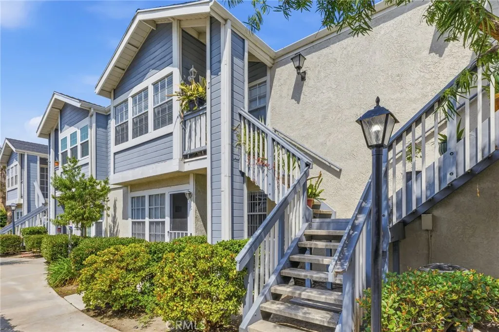 Beautifully updated upper-level 2-bedroom, 2-bathroom condo located in an interior position of the complex, offering added privacy. This well-maintained home features spacious bedrooms, two full bathrooms with recent renovations, and high vaulted ceilings that create an open, airy feel throughout. The interior showcases vinyl flooring throughout and a remodeled kitchen with modern finishes. The inviting living room flows seamlessly into the dining area, providing a functional and comfortable layout. Additional features include an HVAC system, water heater, and in-unit washer and dryer conveniently located on the balcony. The property also includes a 2-car garage. Conveniently located in Anaheim with easy access to major freeways including Interstate 5, California State Route 91, and California State Route 57, providing connectivity throughout the region. Close proximity to shopping, dining, and entertainment, including Knotts Berry Farm.