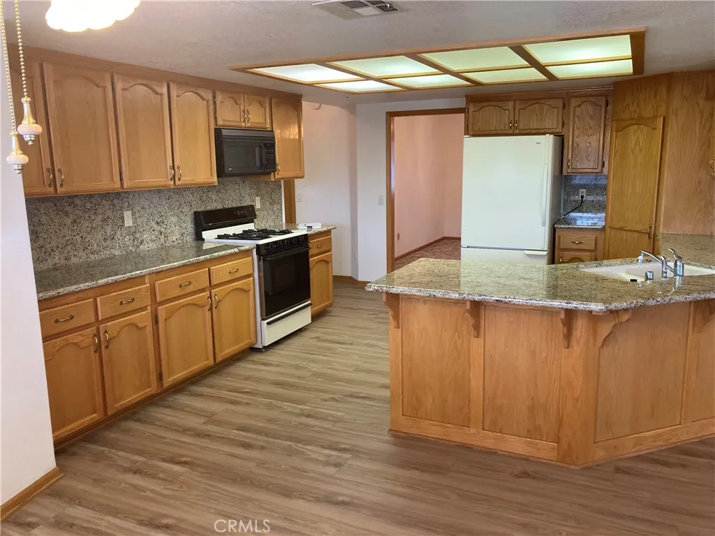 Charming Apple Valley Gem on the Market for the first time since 1994! This beautifully maintained home is on the market and now offered at a newly reduced price. Pride of ownership shines throughout this four-bedroom, two-bath home, lovingly kept by its original owner. All bedrooms are conveniently located on the ground floorno stairs, no hasslemaking the layout comfortable and accessible for all. Step inside to a turnkey interior featuring a remodeled kitchen with granite countertops and built-in appliances, including an oven range and microwave. Both full bathrooms have been well maintained and updated throughout the years. Much of the home features attractive, easy-care laminate flooring. A cozy brick fireplace warms the den, creating the perfect gathering space. Outside, the property offers expansive front and rear yards, a circular driveway, and dual driveways leading to the backyardideal for extra vehicles, toys, or work trucks. An RV hookup is already in place, and the home is equipped with an automatic fire-sprinkler system in every room for added peace of mind. Nestled on a cul-de-sac, this is a trust sale with no court confirmation required, making the process smooth and straightforward. Don't miss your chance to make it yours.