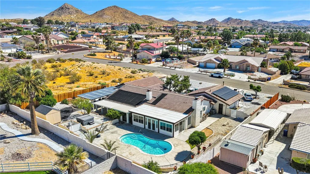 Welcome to this beautiful Home with ADU! Featuring 4 bedrooms, 3.5 bathrooms, a den,and a versatile bonus room ideal for an office.The private attached ADU/guest house with its own entrance offers a full kitchen, bathroom, and laundryperfect for extended family or rental income.Enjoy a sparkling pool and an inviting sunroom that opens to a porch, creating a seamless space for relaxing and entertaining. The main home offers an open floor plan with spacious living and dining areas.The kitchen features granite countertops, recessed lighting, a designer tile backsplash, built-in stainless steel stove, and tile flooring.The primary suite includes a private fireplace, walk-in closet, dual-sink bathroom, and additional space ideal for a gym or study.Additional highlights include a new roof and solar panels for enhanced energy efficiency. The home is clean and move-in ready.Conveniently located approximately a 4-minute drive to the hospital, dining, and entertainment, and just 5 minutes from Interstate 15ideal for commuters. Don't miss this opportunity!!