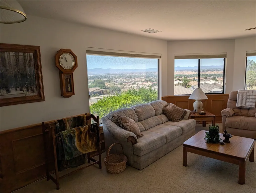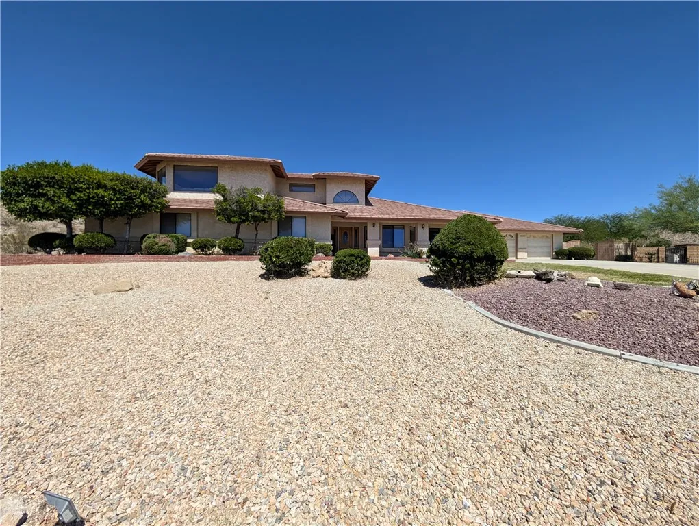 Welcome to this spacious and elegant custom home located in the prestigious Desert Knolls Manor area of Apple Valley. This 4-bedroom, 3.5-bathroom estate spans approximately 3,491 sq ft and sits on a beautifully landscaped -acre lot. Designed for both comfort and functionality, the home features formal and informal living areas, a large breakfast dining space, a generous kitchen with ample counter space and cabinetry, and oversized bedroomseach with walk-in closets. The central vacuum system, two A/C units, and well-maintained mechanicals ensure year-round comfort and energy efficiency. The luxurious primary suite includes a spa-style bath complete with dual vanities, soaking tub, and skylights that bring in warm, natural light. Additional skylights brighten the covered back patio, creating an ideal setting for entertaining or relaxing in comfort. A spacious upstairs loft provides a Million Dollar View of the entire Apple Valley, and features a wet bar, built-in storage, and a private half bathmaking it the perfect space for a game room, office, or guest retreat. There is a mini-split in the Office/Library/5th Bedroom behind the garage. Step outside to a thoughtfully designed backyard with a dog run that includes running, and plenty of room for expansion. Whether you dream of adding a pool, spa, or garden, theres ample space to bring your vision to life. A bonus detached garage in the back offers space for toys, a workshop, or a home gym, and the charming she-shed is ready for hobbies, crafts, or quiet escapes. The 3-car attached garage offers even more storage and convenie