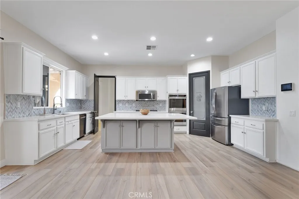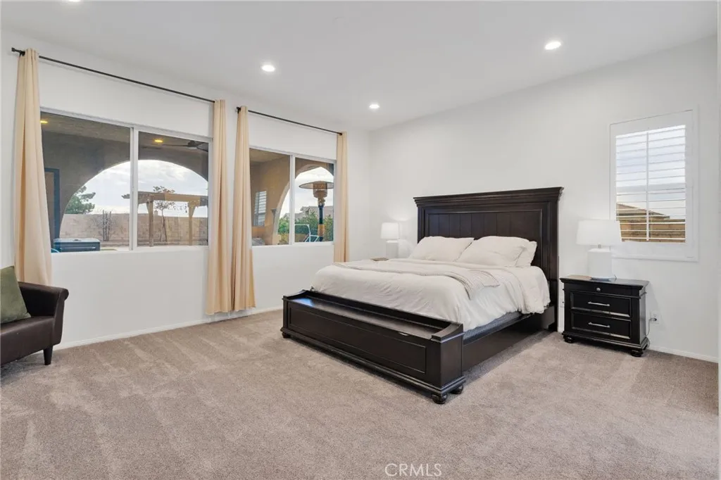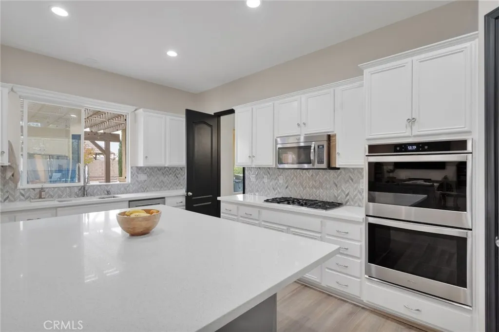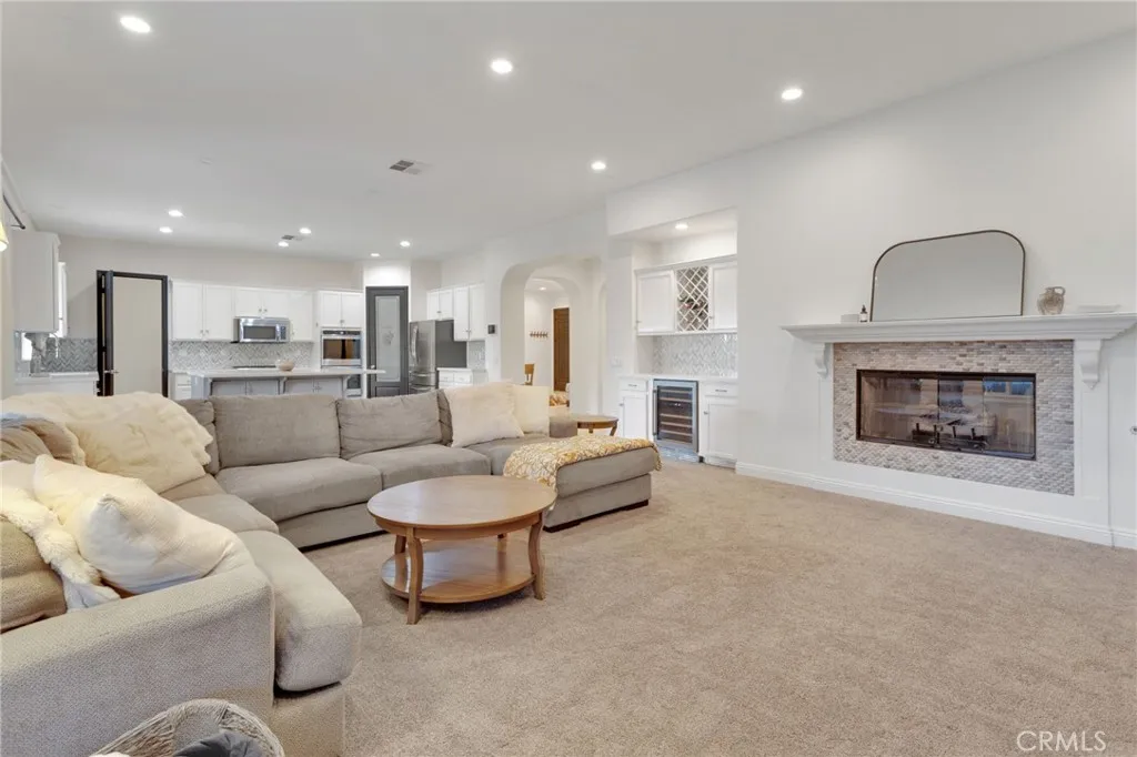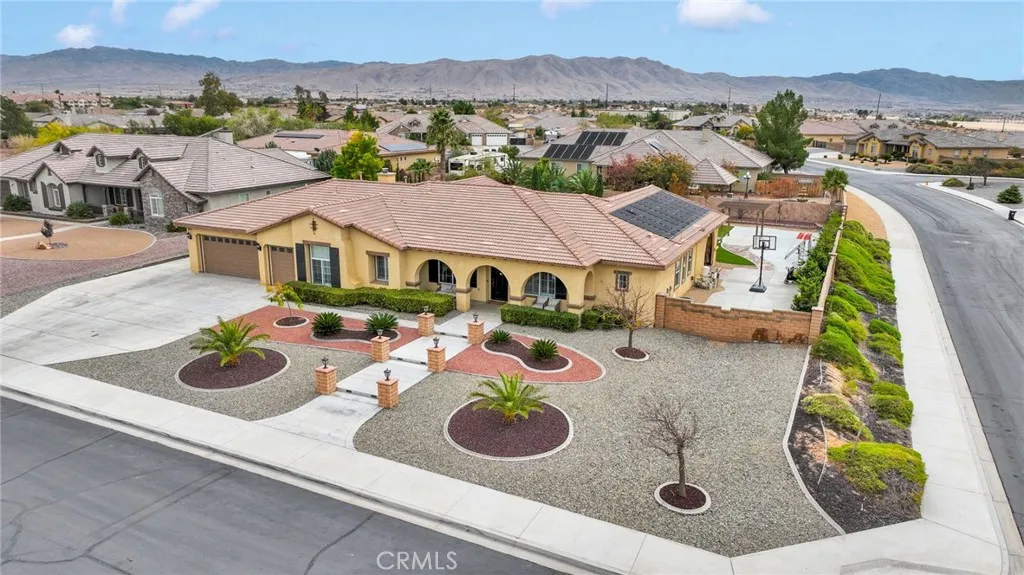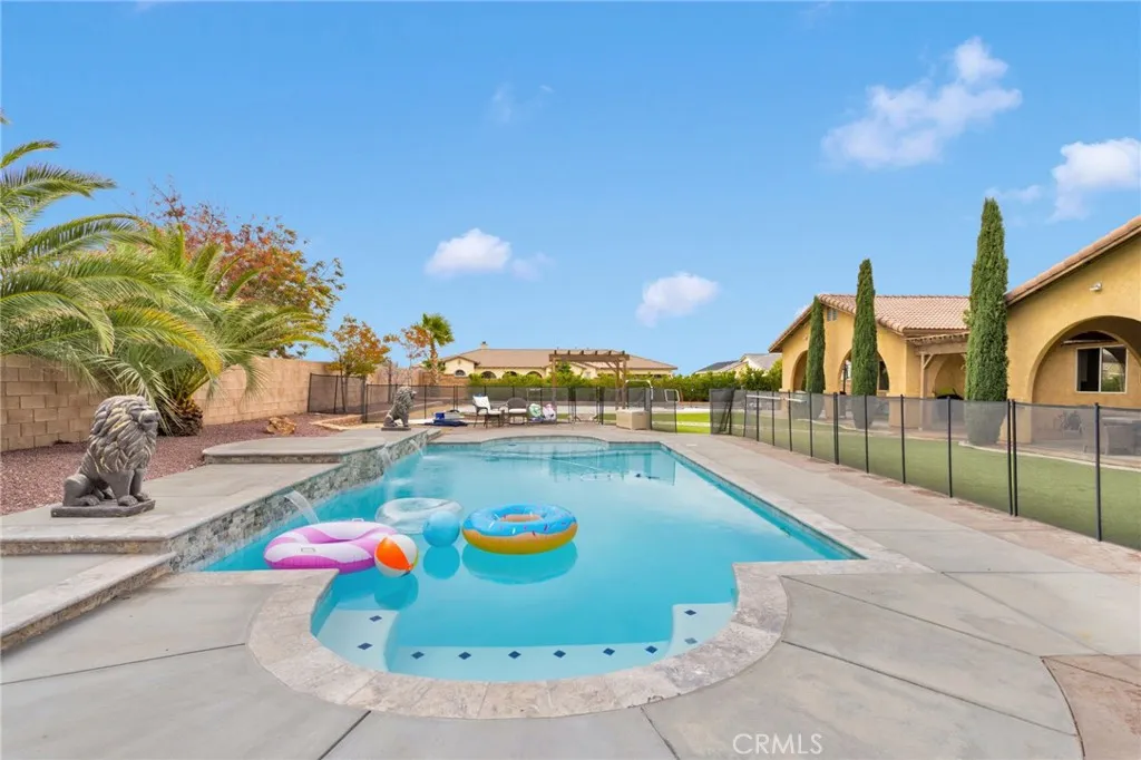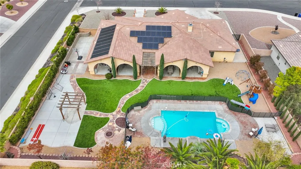Welcome to Fuji Court, a retreat-like home in the gated Veranda community. With 3,184 sq ft of living space, 4 bedrooms, an office/bonus room, and 2.5 baths this home is designed for refined comfort and easy living. Beautiful curb appeal and landscape lighting highlights the architecture & mature plantings. Inside, tall ceilings and large windows bring natural light into every room. The layout includes a formal living room, formal dining, and a spacious family room with fireplace, built-in wine bar, and expansive views that extend living space into the stunning backyard. The remodeled chefs kitchen features white cabinetry, quartz countertops, a large island, Carrara marble backsplash, double smart ovens, walk-in pantry, coffee bar, and included refrigerator. The kitchen flows seamlessly to the family room where cooking, conversation and everyday living come together. The owner's suite offers a luxurious place to unwind and a spacious ensuite bath with dual sinks, makeup vanity, jetted soaking tub, and a large walk-in closet with built-in organization. Three additional generously sized bedrooms plus a bonus room that works well as a 5th bedroom, media room or home office. Set on nearly a half-acre corner lot, the backyard is designed for relaxation & recreation. Gated RV parking and extensive concrete work lead to a backyard built for year-round enjoyment. The large under-truss patio offers recessed lighting, ceiling fans and TV mounts. A swimming pool with a sunning ledge, raised waterfalls, tanning deck, & safety fencing creates a private resort feel. A wood gazebo, firep