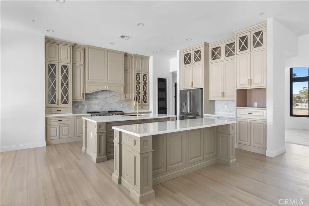 Welcome to 20721 Standing Rock Avenue. This BRAND NEW custom-built residence offers an impressive 3,404 square feet of sophisticated and comfortable living space, showcasing 5 spacious bedrooms, two of them being full bedroom suites, and 4 generously sized full bathrooms. A grand entry with double wrought-iron doors welcomes you to a flawless open floor plan with soaring 13ft and 11ft ceilings throughout the home allowing abundance of natural light. The modern kitchen is truly a chef's delight with two oversized islands with marble countertops ideal for meal preparation or family gatherings. Custom full cherry wood frame fitting cabinets with soft closing glassed faced doors and dovetail drawers are a hallmark of luxury craftsmanship in this home. Fully equipped with stainless steel high-end Thor appliances featuring a 48 inch six-burner range and matching hood, this chef-inspired kitchen is both stylish and functional. A spacious walk-in pantry offers generous storage. Elegant custom chandeliers as well as recessed lighting illuminate the arched hallways that lead to the bedrooms. As you enter the double doors to the primary suite youll find a peaceful retreat with its very own private patio, a spa-inspired bath including an impressive shower, freestanding jet tub, dual vanities and his and her walk-in closets. The interior of this home showcases many upgraded details such as the 8ft solid wood doors throughout and the smoked glass sliding closet doors in the bedrooms. A stand out feature in this home are the large black aluminum, double pane, argon filled insulated, 5 inc
