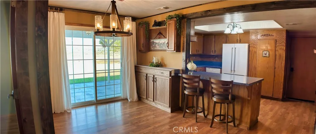 Ultimate High Desert Retreat on 2+ Acres: Fully Upgraded & Equestrian Ready! Have your own well and don't pay those high water prices !!!! Welcome to this extraordinary, fully upgraded 4-bedroom, 2-bathroom home, perfectly situated on an expansive 2.06-acre lot in Apple Valley. This property is a dream for those seeking modern comfort in a country setting, generous storage, custom features, and unparalleled equestrian and RV amenities. Inside, you will find: Custom Kitchen & Dining: A beautifully remodeled kitchen featuring solid surface Corian Counters, a double oven, and an extra-large, step-in pantry adjacent to a large dining room with built in buffet. Cozy Living Spaces: Enjoy two inviting fireplaces: a romantic fireplace in the Primary Bedroom and a powerful wood-burning insert with fan in the living/family room. Luxury & Comfort: Both bathrooms have been remodeled, and the home boasts ceiling fans throughout for year-round comfort, plus custom lighting throughout that enhances every space. Abundant Storage: Never run out of space with three (3) linen closets in the hallways, an extravagant laundry room, and custom cabinets in the garage with workbench. Next to the laundry room is a large craft room ready for your projects. The exterior is an entertainer's paradise and a functional dream: Outdoor Living: The backyard features a stunning back patio fire pit with a seating area, perfect for gatherings under the stars. A cozy front porch with rocking chairs to relax in. Equestrian & Farm Ready: The property is set up for country living with a fully functional horse arena