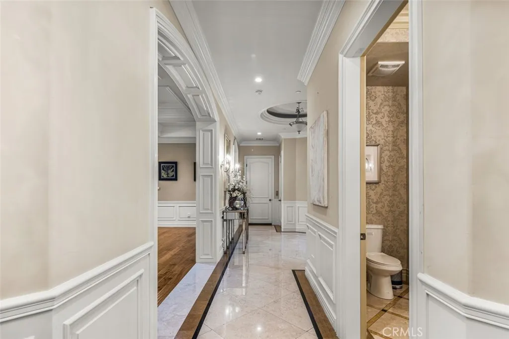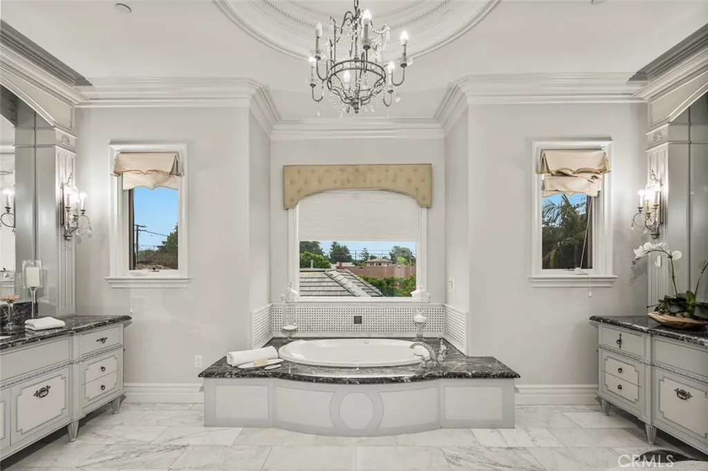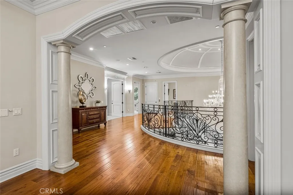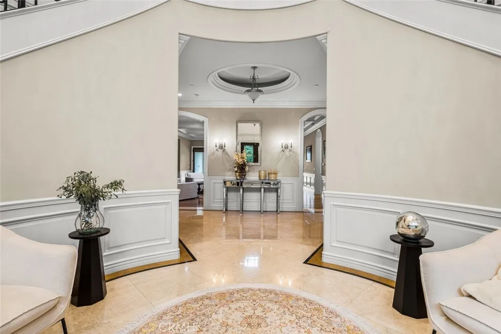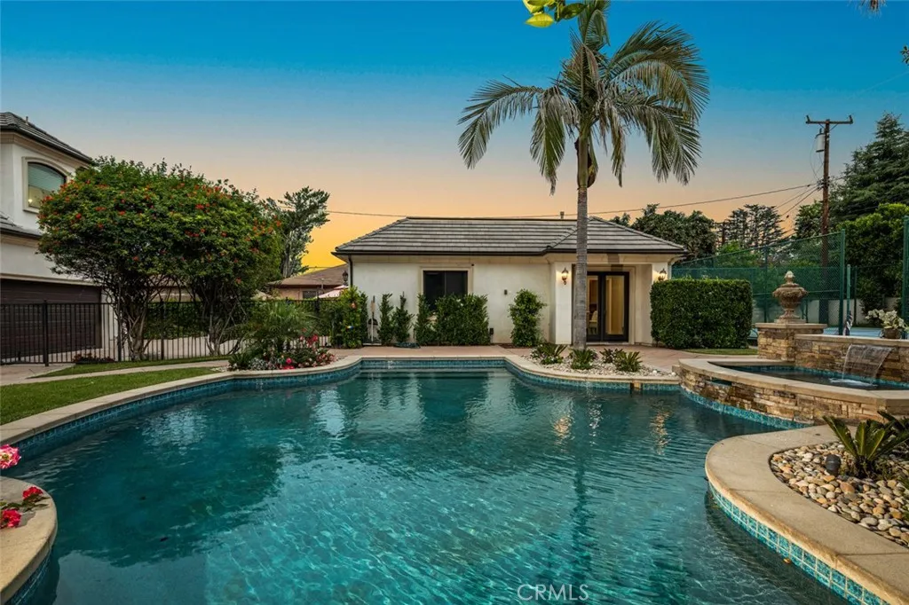 Dramatic, distinctive and undeniably radiant, this stunning custom compound situated within its own private gates provides the perfect blend of classic Renaissance-inspired architecture with todays conveniences and accoutrements. A dramatic two-story formal entry hall sets the tone for the interiors. From there, a series of wonderfully scaled formal and informal rooms unfold before you. Throughout the spacious interiors, the carefully selected finishes contribute to a feeling of quality, warmth, and comfort. Impressive, yet eminently livable, no other home offers such a unique combination of setting, space, and privacy. The house is complemented by over a half acre of stunning gardens, multiple outdoor living areas, a professional tennis court, and a resort-like pool area ideal for entertaining or enjoying the tranquil setting. Totaling five generously sized bedrooms and six and a half baths, the compound also offers amenities such as a full sized movie theater, private gym, and a sizable reception room. Designed without compromise, this offering includes every imaginable amenity in a setting that is private, spacious, and located in one of Southern California's premier communities.