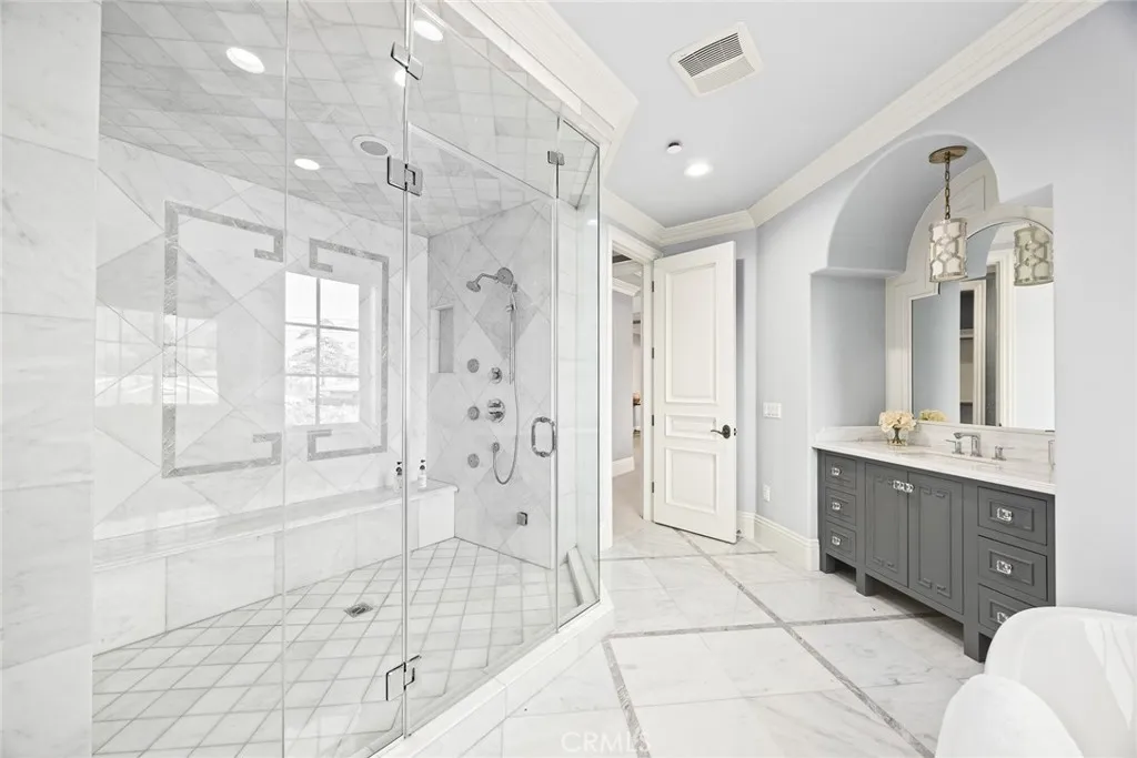 This magnificent cottage style estate is located in the highly sought after "College Streets" neighborhood in Arcadia, close by the Arcadia Mall and Arboretum. It features an exceptional floor plan and elegant, luxurious, high-quality design. The front door opens to a stunning two-story foyer with a sparkling crystal chandelier, an oval domed ceiling, and inlaid marble floors. The home boasts a wrought-iron staircase, a luxurious dining room with designer wallpaper and an elegant chandelier, a living room, and a home theater equipped with surround sound, a 3D projector, and velvet-like wall panels. The open kitchen features custom cabinetry, Vikings appliances, a Sub-zero refrigerator and a wok kitchen. You can relax on the outdoor porch, enjoy the beautiful swimming pool, spa, and mountain views. The luxurious master suite includes a separate sitting area, balcony, and walk-in closet. The master bathroom features a freestanding bathtub, steam shower, double sinks, and marble floors. The home also boasts a spacious family room, a bar, and a climate-controlled wine cellar. The house faces north-south, offering good Feng Shui. This is truly a unique estate and dream home for the new homeowner!