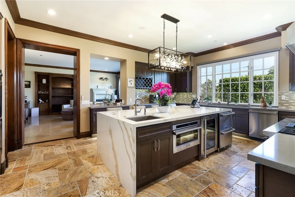 Welcome to luxury resort living in the exclusive guard-gated Anoakia community of Arcadia. This stunning estate offers 6 bedrooms (all ensuite), 1 office, 7 bathrooms, and a 3-car garage plus bonus room. The main level features two generously sized ensuite bedrooms plus a private office, ideal for multi-generational living or working from home. Upstairs, youll find three master suites and an exceptional Presidential Suite, all designed with elegance and privacy in mind. The front and backyard showcase brand-new water fountains and are finished with Castile Deva Acadia flooring, made in Spain. The home has been completely refreshed with brand-new exterior and interior paint, accented by gloss-finished stone, custom electric curtains, and a fully integrated advanced smart home system. Soaring ceilings and oversized windows flood the home with natural light. The formal dining room sits just off the hallway, highlighted by a crystal chandelier and oversized French doors, creating a picture-perfect space for gatherings. A pantry with Samsung wine cooler connects seamlessly to the dining room. French doors open to the front yard fountain, offering the perfect setting for afternoon tea with serene mountain views. The fully remodeled gourmet kitchen is a true showpiece, featuring top-of-the-line Viking commercial-grade appliances, Italian-made travertine flooring, quartz backsplash, Ruvati deep sink, and another crystal chandelier. An oversized quartz waterfall island anchors the space, surrounded by abundant custom cabinetry. Highlights include a Viking 7 Series range with teppan,