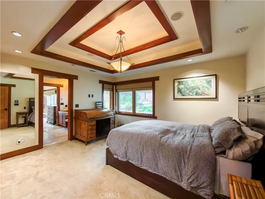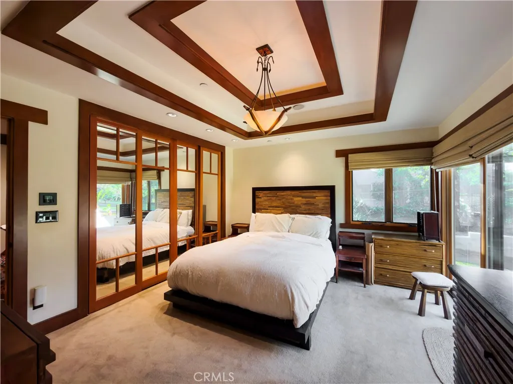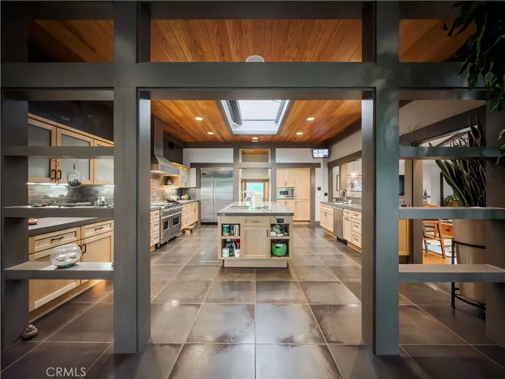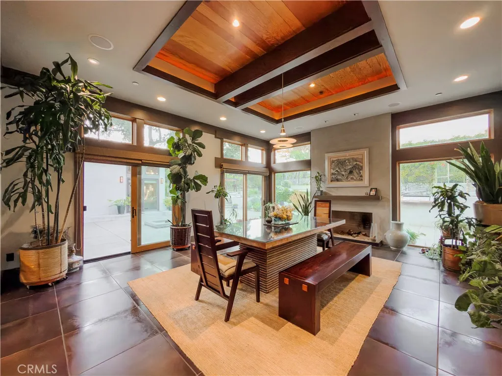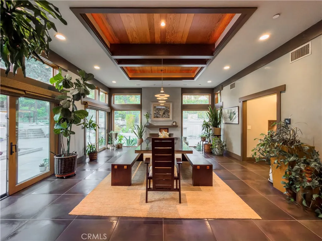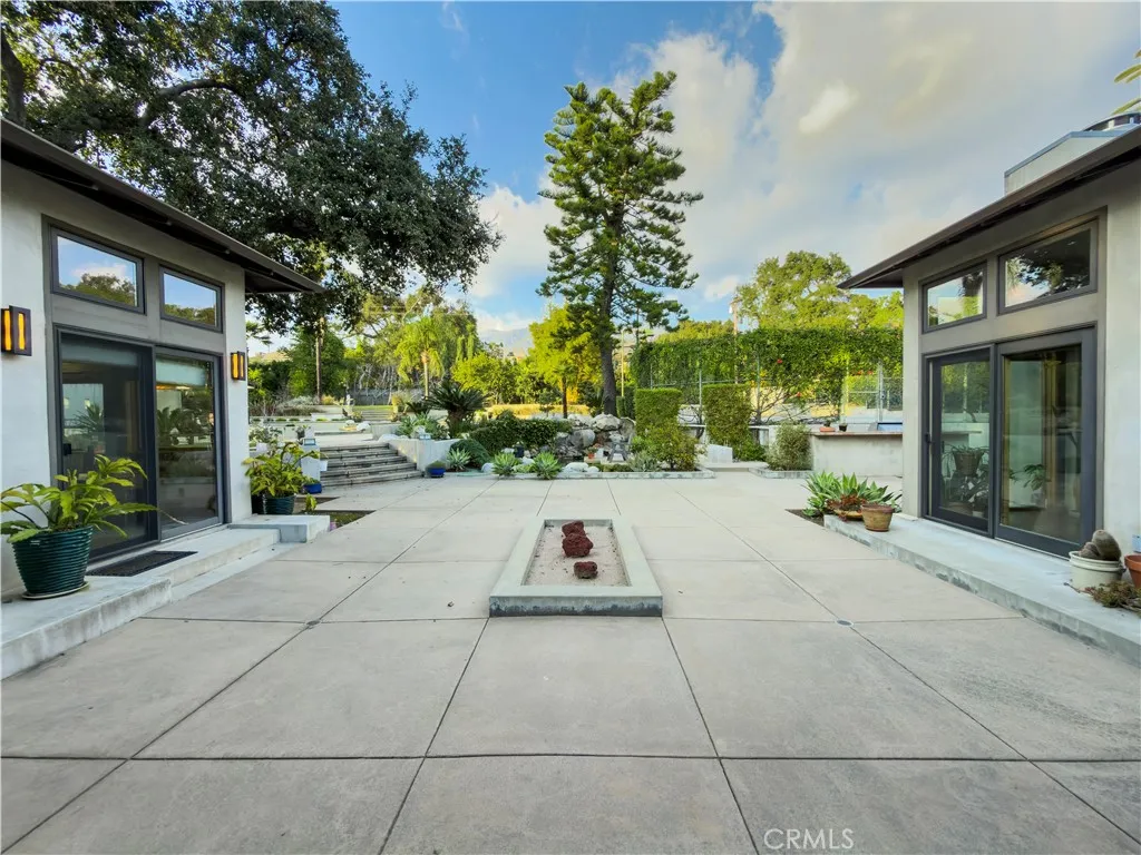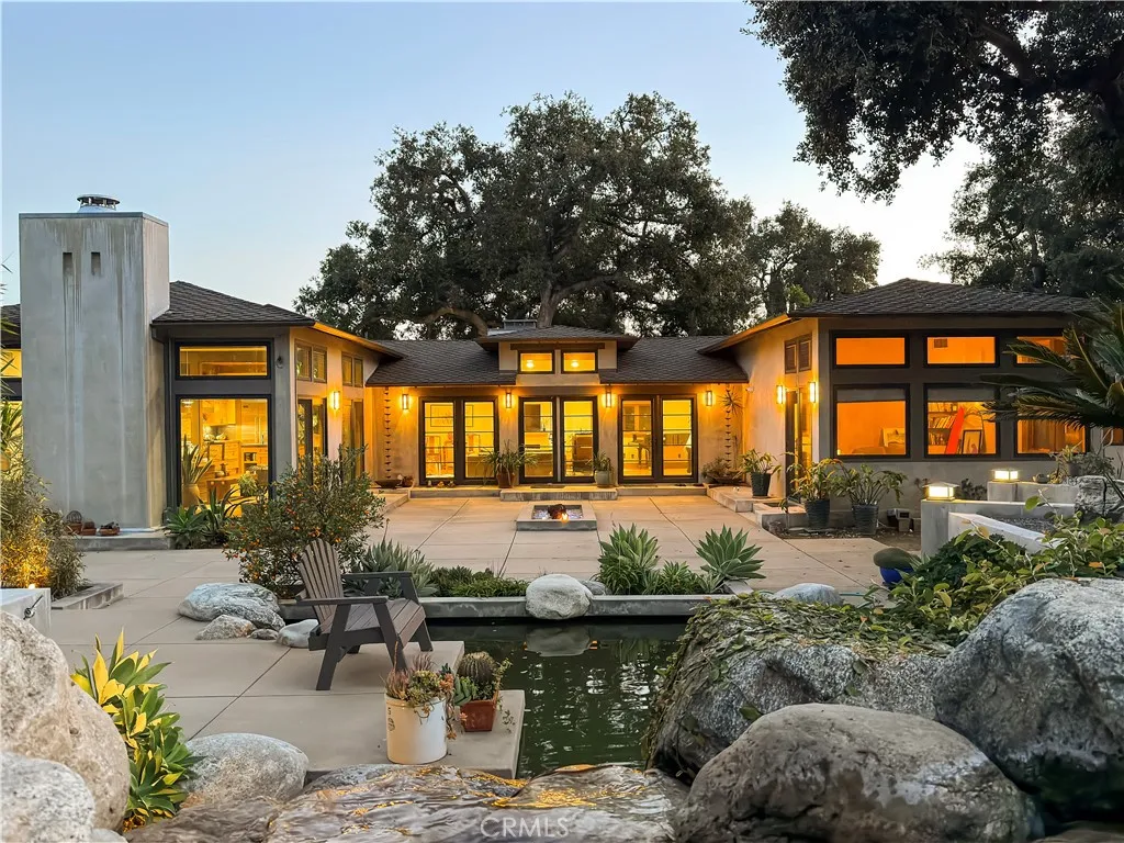 Welcome to a rare Japanese-inspired estate located in the prestigious Santa Anita Oaks enclave of Upper Rancho, Arcadia. Privately set behind majestic mature oaks, this exceptional single-level residence was extensively remodeled and expanded in 2012, blending timeless design with modern luxury. Upon entry, the home reveals a thoughtfully curated open floor plan filled with natural light and tranquil garden views. The private bedroom wing features an elegant primary suite with soaring vaulted ceilings and direct patio access, complemented by three additional ensuite bedrooms and a dedicated office that easily converts to a fifth bedroom. The heart of the home is the expansive living and dining areas, seamlessly flowing into a striking contemporary kitchen designed for both entertaining and everyday living. Walls of glass open to the backyard, creating effortless indoor-outdoor connectivity and a true Zen-inspired retreat. A generous family roomfully equipped as a private movie theateradds versatility and comfort, while the rear service corridor provides access to the laundry room and three-car garage. The resort-style grounds are extraordinary. The expansive backyard showcases a full tennis court, swimming pool, spa, multi-level koi pond with waterfall, covered lounge pavilion, outdoor kitchen, and a lush exotic fruit orchard featuring dragon fruit, persimmon, pomegranate, loquat, guava, peach, banana, jujube, avocado, and citrus. This serene estate offers privacy, sophistication, and an unparalleled lifestyle in one of Arcadias most coveted neighborhoods.