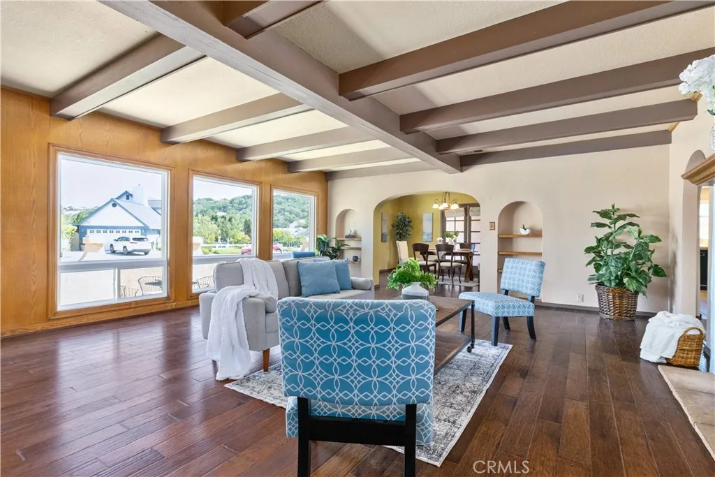 Welcome to 1024 Robin Circle, a beautifully remodeled 3-bedroom, 2.5-bath Spanish-inspired ranch style home in one of East Arroyo Grandes most desirable neighborhoods. With its timeless red-tile roof, arched entryways, and charming front courtyard with fountain, this home blends Mediterranean charm with modern comforts. Step inside to find open-beamed ceilings, hand-scraped hickory hardwood floors throughout, and a unique two-way fireplace that warms both the living and family rooms. The sunlit dining room opens through French doors to a Saltillo-tiled breezeway, connecting seamlessly to the oversized 3-car garage. The kitchen is both stylish and functional, featuring stainless steel appliances, tile counters, a breakfast bar, recessed lighting, and a built-in desk. Just off the kitchen, the laundry room includes built-in cabinets and direct access to the backyard patio. The sunken family room offers a wet bar perfect for entertaining while arched doorways and architectural details enhance the homes Spanish character. Two bedrooms enjoy adjacent bathrooms for comfort and privacy. Outdoors, the easy-care landscaping with drip irrigation and sprinklers, plus two storage sheds, make maintenance simple. The location is unbeatable: just minutes from the Village of Arroyo Grande with its local shops, restaurants, and farmers markets, while also close to Lopez Lake, top-rated schools, wineries, and the Central Coasts pristine beaches like Pismo and Shell. Trails, parks, and playgrounds are just around the corner, giving you endless options to enjoy the Arroyo Grande lifestyle.