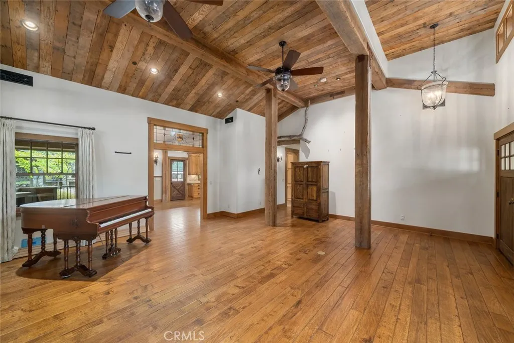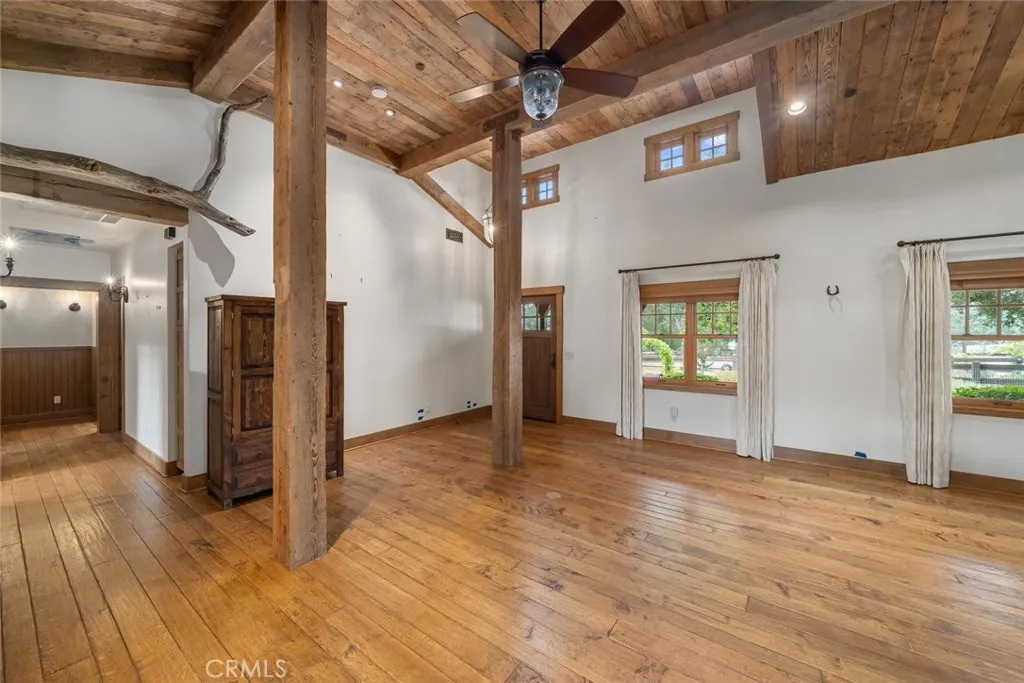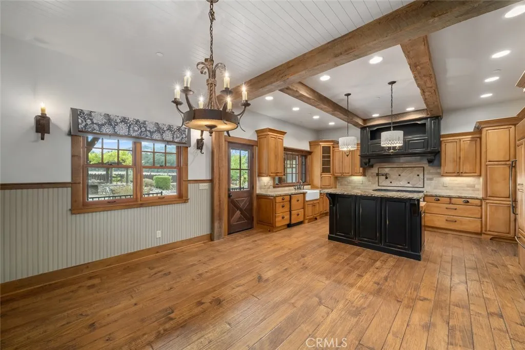 This breathtaking Arroyo Grande Estate blends rustic charm with refined luxury, offering scenic views and impeccable craftsmanship. The main residence features 3 bedrooms, 2 bathrooms, and 2,088 square feet of thoughtfully designed living space, all framed by a stunning wraparound porch and manicured landscaping. Inside, soaring wood beam cathedral ceilings, quarter sewn white oak flooring, rich wood-trimmed windows, and a floor-to-ceiling stone fireplace anchors the expansive great room. Recessed lighting, ceiling fans, and timeless finishes create a warm, inviting atmosphere. The custom chefs kitchen is a showstopper with granite and marble countertops, stone tile backsplash, a Wolf 6-burner stove with pot filler, farmhouse sink, Sub-Zerorefrigerator, dishwasher, built-in microwave, and an oversized island with granite barperfect for gatherings. The adjacent dining area features a designer chandelier with crafted metalwork and matching sconces, overlooking the serene backyard oasis. Outdoors, enjoy your own entertainers paradise: a picturesque garden path leads to a fully-equipped outdoor kitchen complete with stone pizza oven, Santa Maria-style BBQ, covered patio, and fire pitall surrounded by lush landscaping and peaceful views. The spacious primary suite offers a luxurious escape with a walk-in closet and spa-inspired ensuite featuring a dual-sink vanity, soaking tub, and a stone tile walk-in shower with dual shower heads. Two additional bedrooms are light-filled and airy, sharing a beautifully updated full bathroom with stone accents and dual vanity. Extra hall storag
