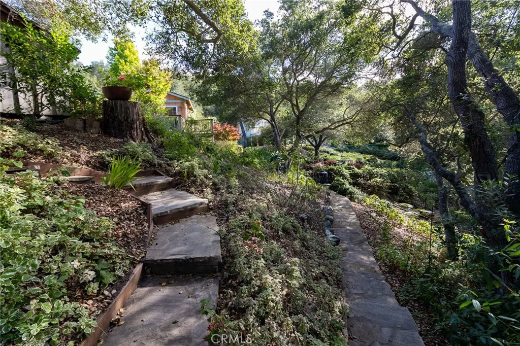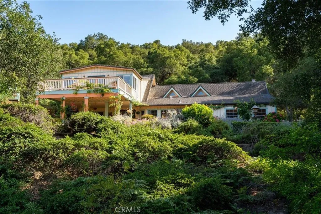 The Ultimate Wellness Retreat! 4BD/3BA + guest cottage & workshop on 1.14 lush, private acres. Nestled behind a private gate at the end of Oak Haven Lane, this 4 bedroom, 3 bathroom home on 1.14 acre offers gorgeous views of the surrounding hills and peaceful, Zen like setting. The charming, detached cottage is 1 bed/1 bath (not included in sq footage or bedroom/bath count) features A/C, Trex deck, and views of the gardens. Thoughtfully landscaped and lovingly curated over the past 20 years, the lush, oak-studded grounds offer a meditative retreat feel with a calming koi pond and waterfall, fairy and butterfly gardens, meandering meditation paths, multiple flagstone walkways, decks, raised beds, fruit trees including avocado, orange, and apple, sitting areas, bird feeding stations and all of it privately enclosed by 8-foot deer fencing. With stunning natural pine interiors and abundant windows that bring in natural light and breathtaking views from every room, this is Central Coast living at its finest. The kitchen boasts extensive counter and cabinet space, premium DCS cooktop with griddle, a separate warming drawer, walk in pantry, breakfast bar, under-sink R/O system and inspiring views of the hills and gardens below. Separate dining room offers plenty of space for memorable gatherings. The family room creates an ambiance of comfort and relaxation. The open living room features soaring wood-beamed ceilings, a grand fireplace, and panoramic garden views. Upstairs, the oversized primary suite offers a walk-in closet, a private seating area, dual sinks, jetted tub, walk-in