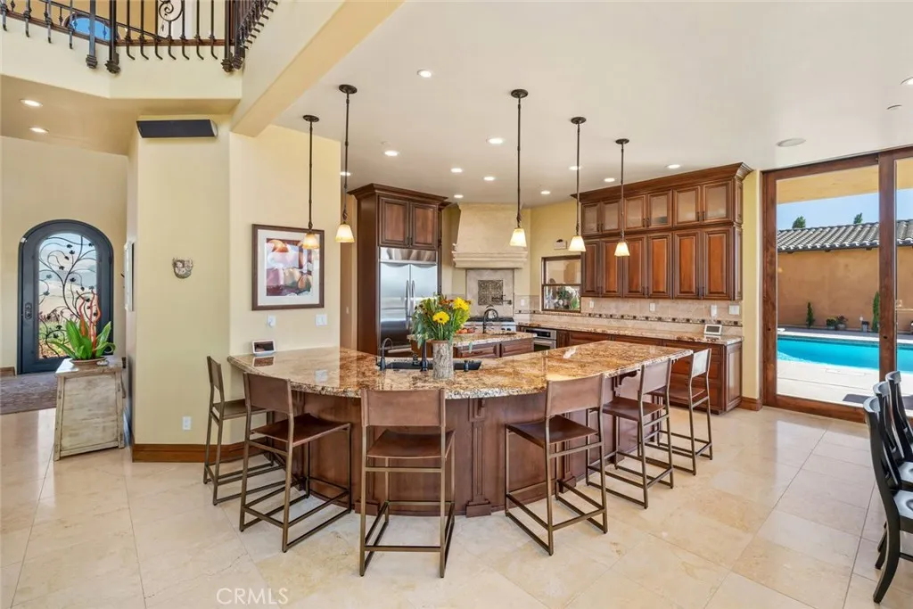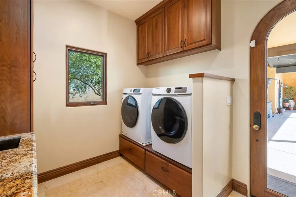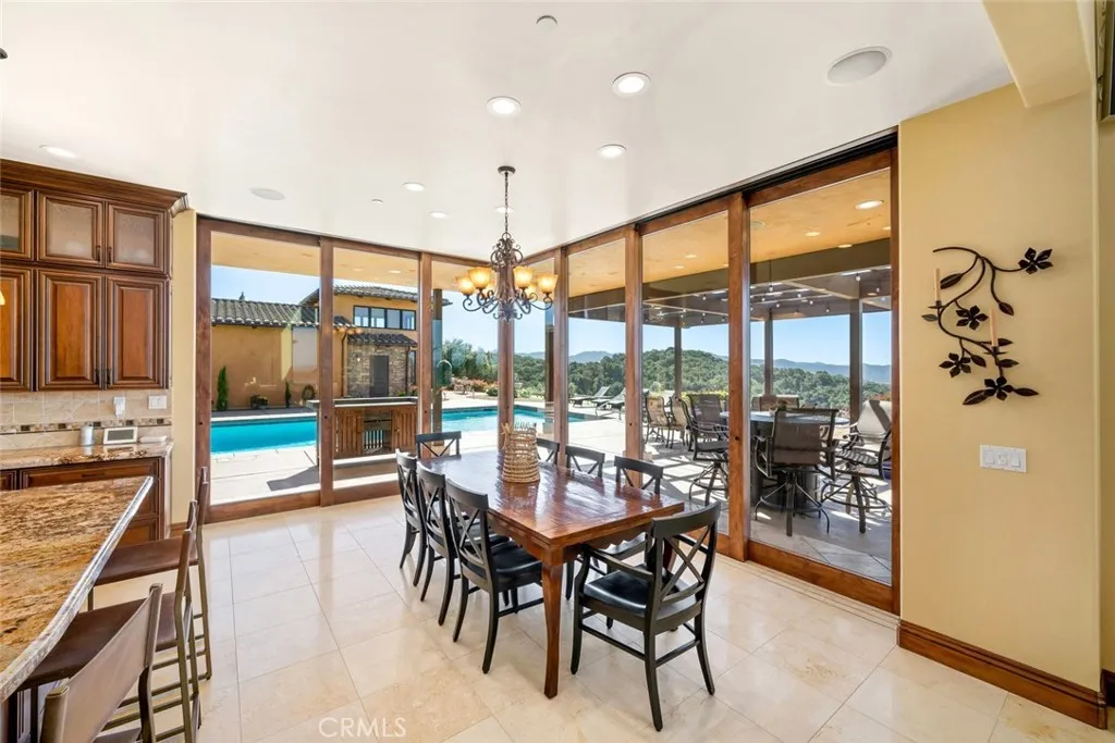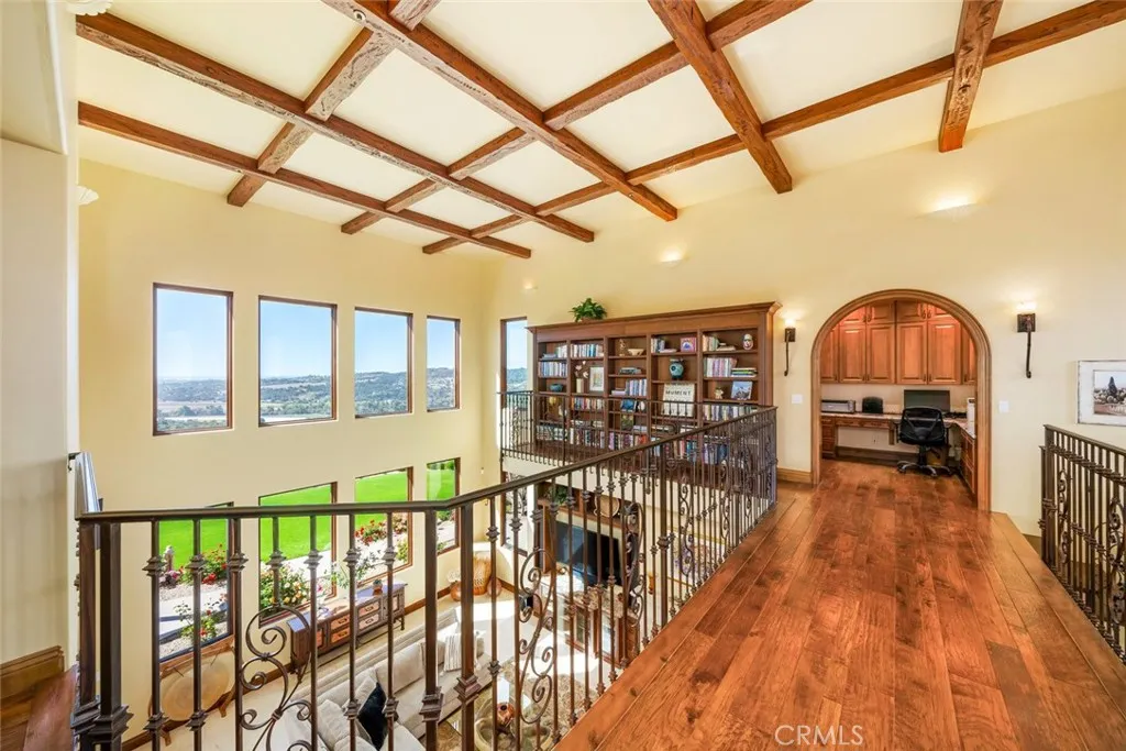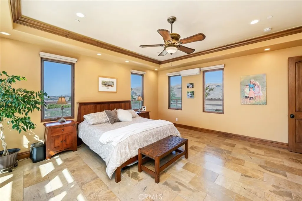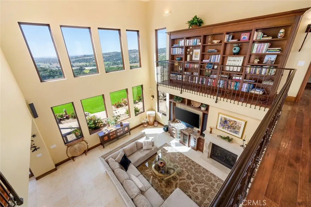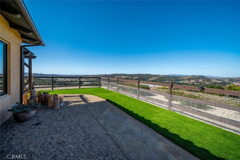 Mediterranean Ridge-Top Retreat with Breathtaking Views and Unmatched Privacy | Perched atop a scenic ridgeline, this stunning Mediterranean estate offers sweeping ocean, mountain, and valley views from nearly every room. Located in the gated, Certified Fire-Wise enclave of Las Ventanas and surrounded by over 4,000 acres of protected open space, the home combines the serenity of nature with the convenience of being just six miles from town. Spanning 4,085 square feet, this energy-efficient residence features 5 bedrooms, 4.5 bathrooms, and a detached 302 sq. ft. guest casita, perfect for hosting or quiet retreat. Sustainability meets luxury with two owned solar arrayscovering 95% of the homes energy needsincluding heating for the Pebble Tec pool, complete with a diving board, hydraulic safety cover, and solar heat. Step inside to soaring 25-foot ceilings, exposed wood beams, and a dramatic two-story wall of windows that flood the great roomwith natural light and frame picture-perfect views. Radiant-heated limestone floorsand custom wrought-iron accentsenhance the architectural richness throughout. The main-level primary suiteis a sanctuary all its own, featuring a cozy fireplace, private patio, and immediate access to a Bullfrog spafor stargazing soaks. A connected sitting room provides flexibility as a private office or lounge space. At the heart of the home is the chefs kitchen, outfitted with cherry cabinetry, striking Mascarello granite, a dedicated prep island, top-tier appliances, and a walk-in pantry. It flows effortlessly into a spacious dining area, where dual slidi