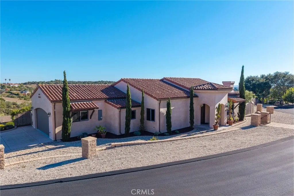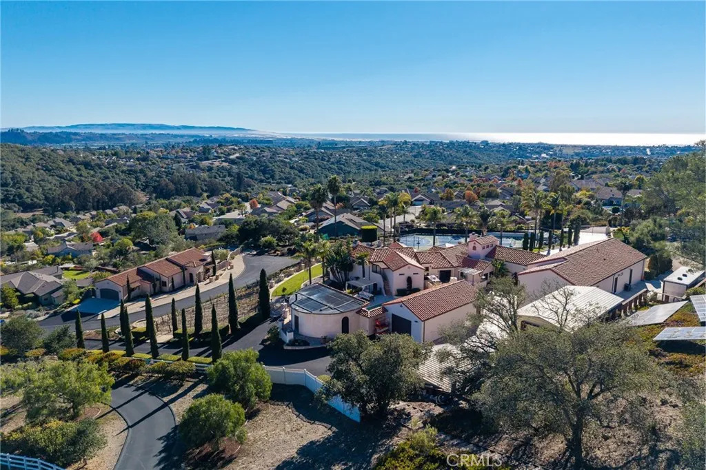 A remarkable blend of luxury, privacy, and versatility awaits in this stunning Arroyo Grande estate. Perfectly situated on 2.8 serene acres, this exceptional property spans approximately 7,840 sq. ft. of living space and includes a magnificent 5-bedroom, 7-bath main residence plus a 1,200 sq. ft. 2-bedroom, 2-bath ADU. Inside the main home, expansive open-concept living spaces flow seamlessly from the grand entry and formal living room to the dining area and chef-inspired kitchencomplete with top-of-the-line appliances, an indoor BBQ, granite countertops, and a large island with custom cabinetry. The elegant primary suite features dual walk-in closets, a spa-style bathroom, and an adjoining sitting area. Each additional bedroom is a private ensuite, beautifully designed for comfort and style. Thoughtfully designed for both entertaining and everyday living, the home also includes a family room, private office, game room, media room with home theater, exercise room, and an impressive temperature-controlled wine cellar. The 5-car garage is complemented by four additional spaces currently housing recreational vehicles, plus a detached 2-car pull-through garage used as a spacious workshop. Outdoor living is resort-inspired, with a pool, spa, outdoor kitchen, fireplace, pizza oven, and a pool house complete with living space, kitchen, and bathroom. Enjoy tennis, pickleball, or basketball on the courts, or simply relax among the multiple patios and sitting areas surrounded by lush, professional landscaping, hardscape, and a small vineyard. The stylish ADU Casita offers its own 2-c