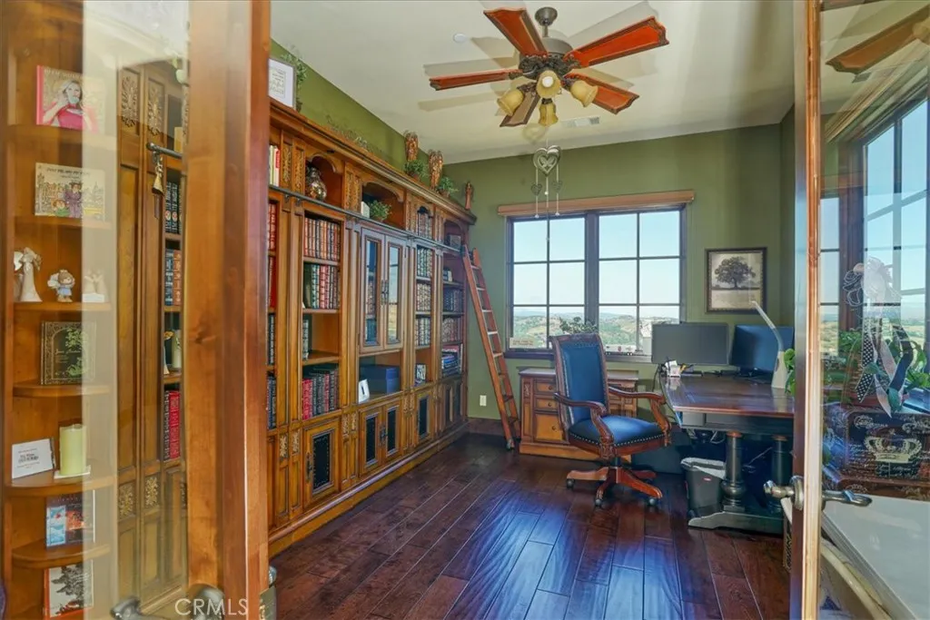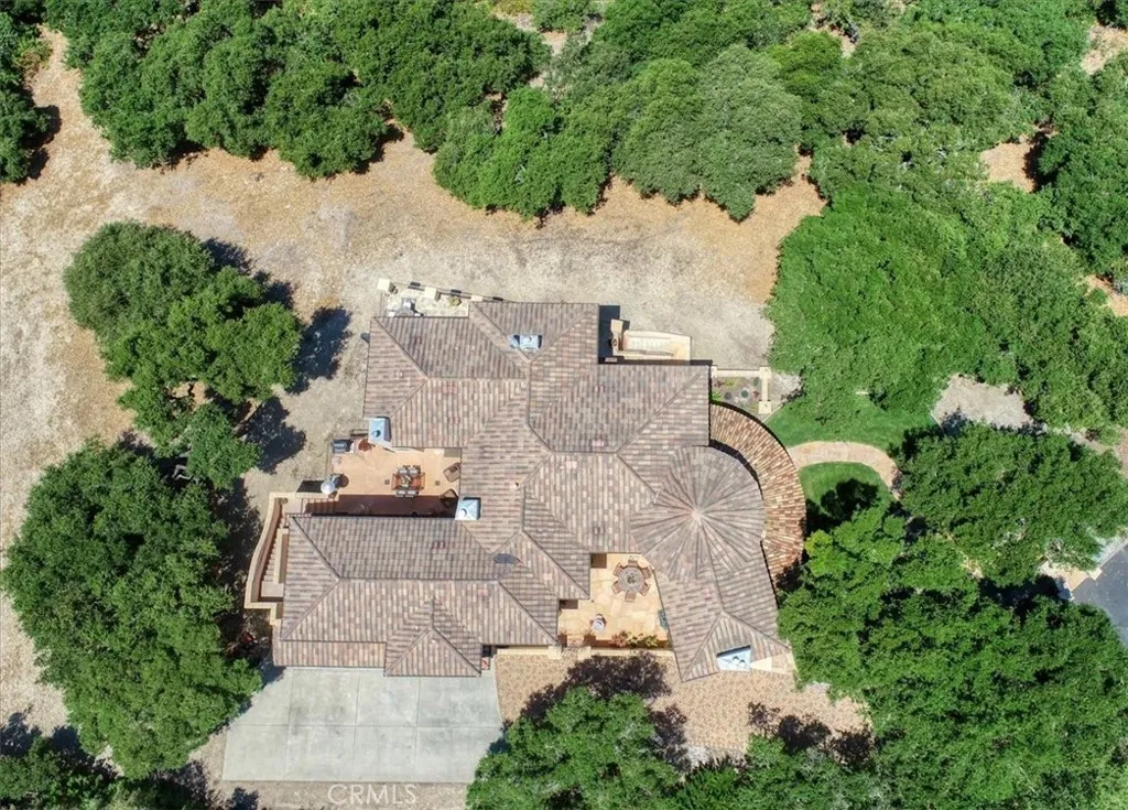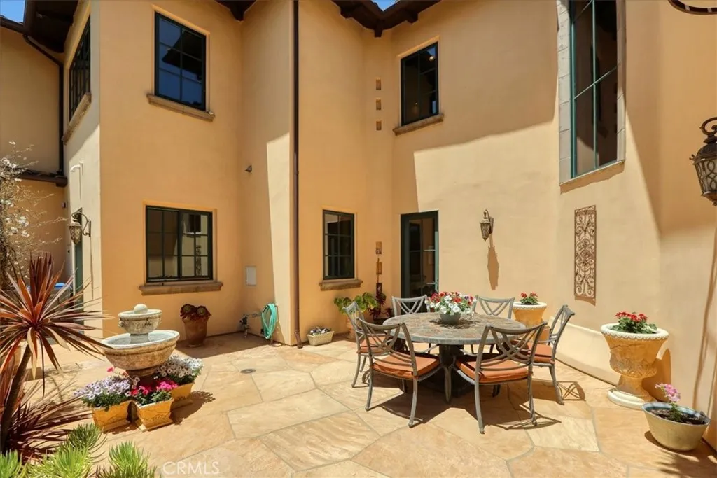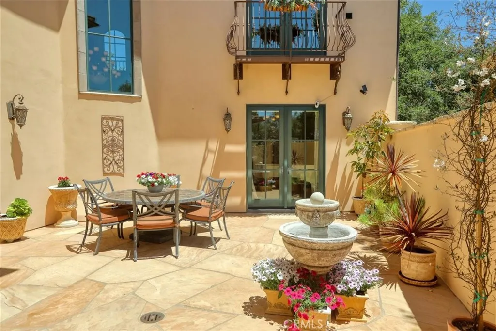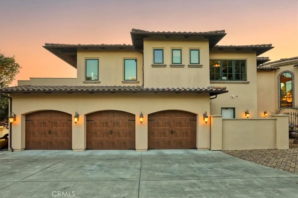 Enjoy the elegance and serenity of this magnificent Tuscan inspired villa that creates a sophisticated yet relaxing atmosphere. Absolutely incredible panoramic views stretch to the Pacific Ocean, the Edna Valley and beyond to the peaks of San Luis Obispo. Entering the home, you will find a welcoming foyer with elevated beam ceiling and beautiful custom wood and iron staircase. The versatile and thoughtfully designed floorplan includes elegant engineered wood flooring throughout the main level and natural wood beamed ceilings. Five fireplaces throughout create an intimate atmosphere. Numerous JeldWen windows provide abundant natural light and outdoor views. On the main level a gourmet kitchen features beautiful natural wood cabinetry with convenient sliding pull out drawers in each cabinet, a Wolf cooktop with custom hand-crafted vent hood, built-in refrigerator, wine fridge, spacious granite counters, and more. The adjoining great room with wood burning fireplace offers access from both sides to outdoor spaces making it ideal for entertaining. On one side, picturesque vistas of the valley, vineyards and ocean await you from the view deck that is over 50 in length. While on the other side is a protected courtyard with its own fireplace creating a relaxed ambiance to enjoy more views and sunsets. In addition to these amazing outdoor spaces is another courtyard at the southside of the residence that is a perfect place for morning coffee or breakfast as the sun rises above the oak trees. The owners suite with its elevated ceiling, fireplace and view deck is a tranquil place to