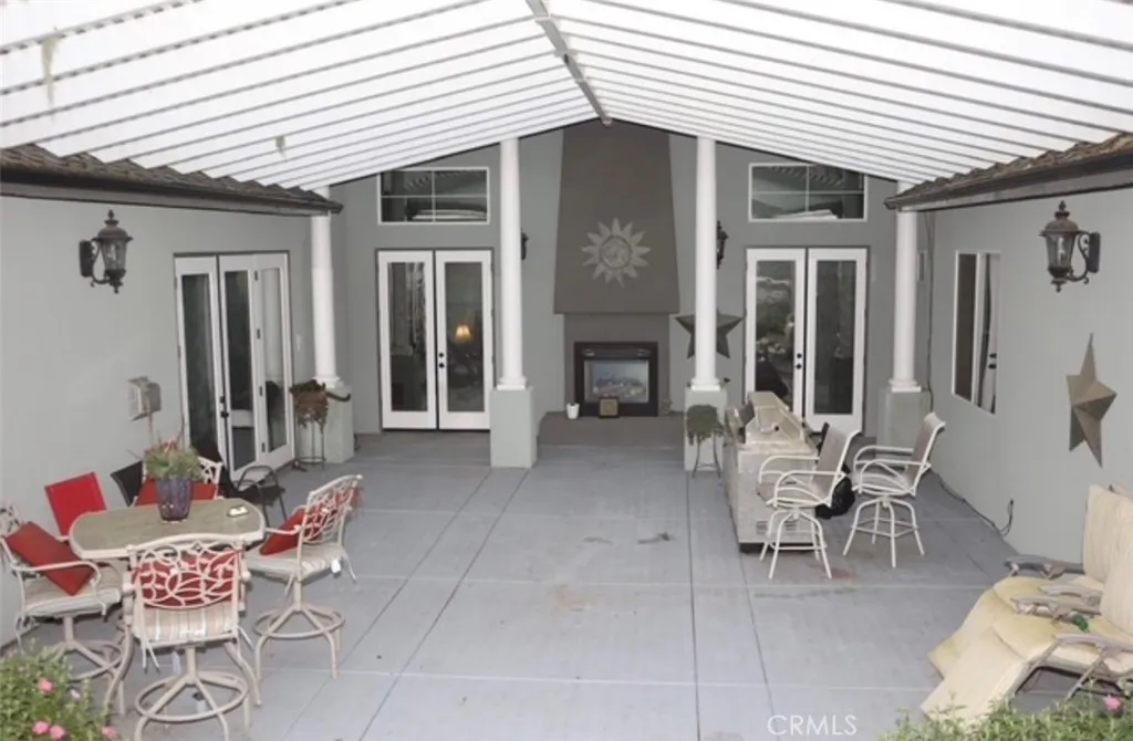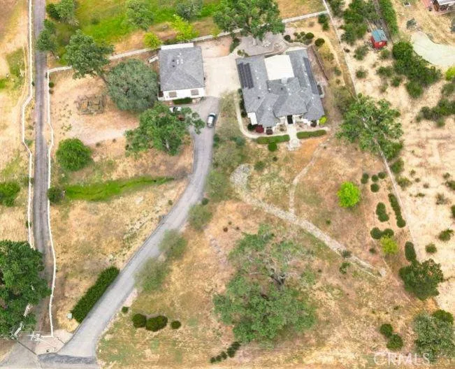 Welcome to this spectacular 1.92 acre property featuring 2647 square foot home with three bedrooms, three bathrooms and a flex room. This custom home offers vaulted ceilings throughout and a gourmet kitchen for entertaining with an oversized refrigerator/freezer and granite countertops.The walk in pantry is spacious for all your storage needs. As you walk into the palatial living room, your greeted with a double-sided fireplace that can be enjoyed from the outdoor patio too. There is a wet bar near the fireplace for your enjoyment as well. As you walk down the hallway, there are two bedrooms that are joined by a jack and Jill bathroom that makes it convenient for living accommodations. The primary suite is extraordinary. You are greeted with another fireplace, a sizable area for your bed and a walk in closet that has top to bottom shelving for clothes and shoes. The primary bathroom has a jetted tub, a separate shower and a water closet. The home has extravagant courtyard that is fully fenced in and you can bbq and sit near the other side of the double sided fireplace for relaxation. There is also a detached garage with RV parking and extra space for more vehicles or storage. There is a loft above that is not permitted. Downstairs, there is also a shower/toilet that is not permitted.Behind the outbuilding, there is an adorable garden shed and garden beds if you enjoy gardening. Other amenities include, patio sitting areas, solar included on the house, fire suppression system, intercom system, a metal carport and lastly a beautiful tree lined driveway.This home has so much t