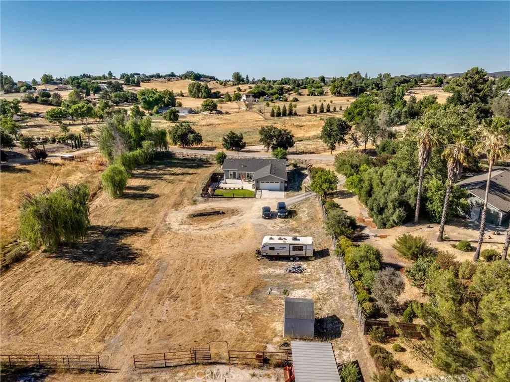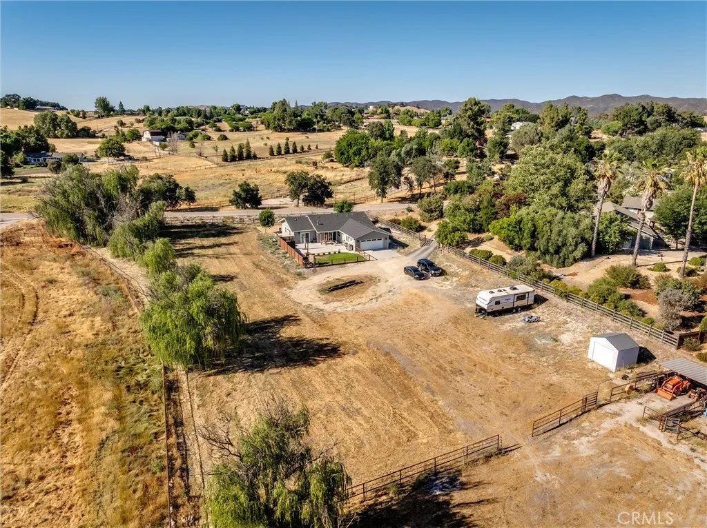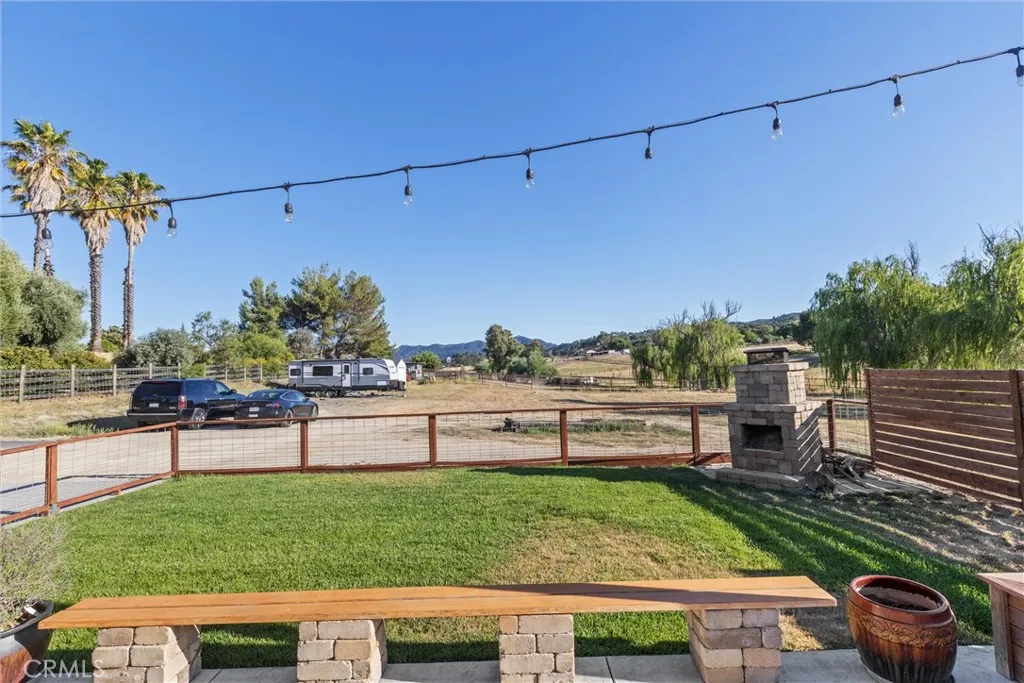 Practically new ranchette in the highly sought after Carmel Ranchos Neighborhood. Set on 1.39 private acres with panoramic views and a fully fenced perimeter (including pipe fencing around 3/4 of the property), this turnkey property combines comfort, style, and functioninside and out. Designed with 2x6 construction and fire sprinklers, this 3-bedroom, 2-bathroom home offers 1,857 sq ft of quality living space with a new-construction feel. The open-concept floor plan features vaulted ceilings, recessed lighting, and heavily insulated walls, ensuring peace, quiet, and energy efficiency year-round. At the heart of the home is a designer kitchen outfitted with stainless steel KitchenAid appliancesincluding a gas range with baking drawer, Even-Heat True Convection, and a 5-burner cooktop. Quartz countertops, soft-close shaker-style cabinets, a large center island with breakfast bar, and a tile backsplash elevate the space, while both a dedicated dining room and breakfast nook provide options for gathering. The living room boasts a cozy fireplace and sliding glass doors that open to a fully fenced backyard retreatcomplete with bistro lighting, an outdoor fireplace, stamped concrete patios, and a grassy lawn with front and rear sprinklers. Retreat to the spacious primary suite with vaulted ceiling, a huge walk-in closet, and a luxurious en-suite bathroom featuring a dual vanity, quartz counters, rain showerhead, and soaking tub. Heated flooring in both bathrooms. Additional bedrooms are generously sized, and one even features private patio accessideal for guests or extended family