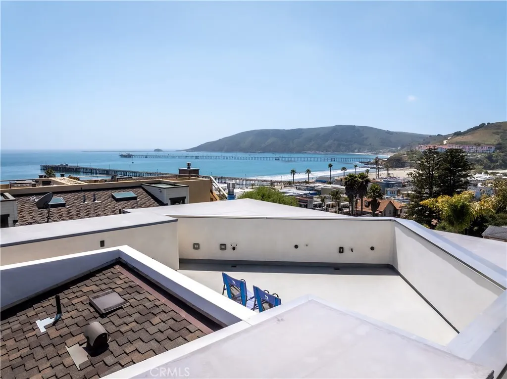 Positioned to capture the best views in downtown Avila Beach, this custom two-bedroom, two-bath retreat is the epitome of refined California Modern design. Offering a seamless blend of luxury and location, this townhome frames mesmerizing views of the historical pier, rolling mountains, and of course, the Great Blue Pacific. The interior is a welcoming palette of European Oak floors, smooth textured walls, and accents of stylish quartz and chic tile. The great room is home to a striking slate fireplace with the room on a unique orientation to absorb the panoramic Avila Coastline views through the 12-foot trifold door. The chef's kitchen boasts commercial grade appliances, timeless white shaker cabinets, and beautiful quartz countertops and offer space to create whatever suits your taste. The ground floor has a comfortable layout with master bedroom offering a spa like bathroom experience, and large walk in closet. The adjoining deck gives an outdoor place to enjoy the sights and sounds of the ocean. Fall asleep to the sounds of waves crashing and live the best vibe and weather on the Central Coast. If you need a 360 view, the rooftop perch is rated for a hot tub and plumb ready for an outdoor kitchen offering you flexibility with fulfilling your dream. This home comes completely turnkey with all furnishings as shown, and active vacation license which is professionally managed. With a strong rental history, you can enjoy the best of both worlds: Enjoy it when you want, and enjoy the rare opportunity of consistent income when you're away!