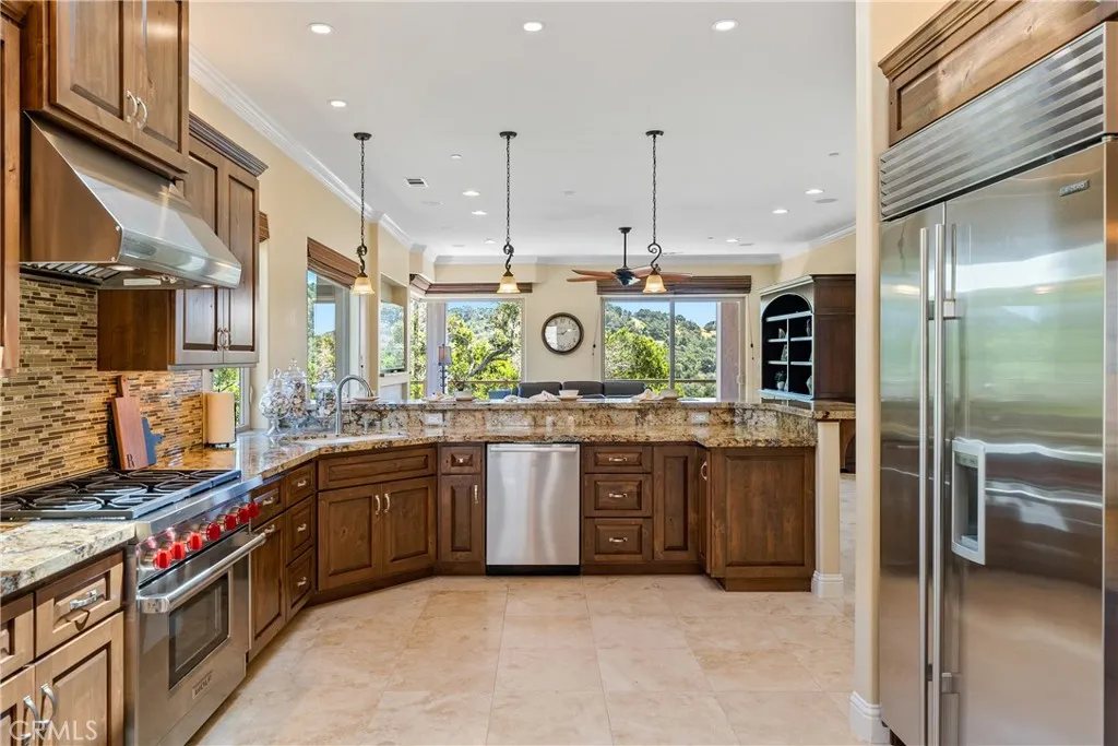 Ocean View Living in Avila Beach, CA - Welcome to your private Coastal sanctuary, ideally situated in the highly desirable, gated community of San Luis Bay Estates in beautiful Avila Beach. This exquisite custom home is nestled at the end of a private street, offering the rare luxury of privacy with only one adjacent neighbor. Thoughtfully designed to take full advantage of its ocean-view setting, this residence blends timeless craftsmanship with modern amenities, creating a one-of-a-kind retreat. From the moment you arrive, you'll be captivated by the inviting front patio, complete with a built-in fire pitperfect for enjoying the views of the majestic California Oaks and Coastal breezes. Step inside to discover impeccable finishes throughout, including intricate custom stonework, French doors in multiple rooms, crown molding, skylights, and stone flooring with elegant accents. An elevator and a dramatic wrought iron staircase connect the homes two levels with style and ease. The main level offers a spacious and open layout, featuring a stunning chefs kitchen with granite countertops, a 6-burner Wolf range and hood, Sub-Zero built-in refrigerator, and gorgeous custom wood cabinetry. Recessed lighting and a large island with breakfast bar make this space both functional and beautiful. The adjacent living and dining rooms flow seamlessly, ideal for entertaining and everyday living. The primary suite is located on the main level and is a true retreat, featuring a cozy fireplace, a walk-in closet, and direct access to an ocean-view deck with built-in heaters. The en-suite bathr