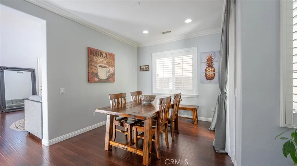 Nestled in the highly sought after Canyon View gated community with 24/7 security, this beautifully maintained 4 bedroom, 3 bathroom home offers stunning mountain views and an inviting atmosphere throughout. Step inside to find a bright, open layout featuring new quartz countertops, elegant window shutters, and stylish crown molding. The spacious kitchen offers a center island, ample cabinetry, and a dedicated dining area that opens to a cozy family room with a fireplace perfect for relaxing or entertaining. The main floor includes a bedroom and full bath, ideal for guests or multi generational living. Upstairs, the primary suite boasts breathtaking views, dual closets, and a luxurious ensuite with dual sinks, soaking tub, and separate shower. Two additional bedrooms share a full hall bath with dual sinks, and the upstairs laundry room with a sink adds convenience. Enjoy outdoor living in the private backyard featuring a built in BBQ and patio area, perfect for gatherings. Additional highlights include dual pane windows, recessed lighting, a commercial grade fire sprinkler system, and a 3 car attached garage with direct access. Community amenities include a sparkling pool, spa, playground, and clubhouse all within minutes of schools, parks, and shopping.