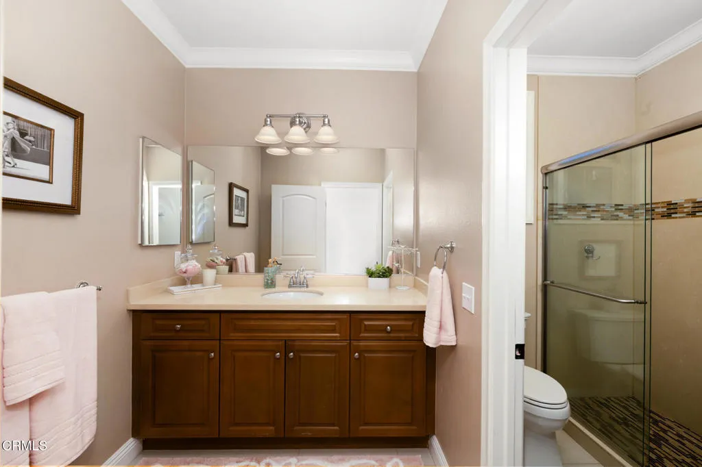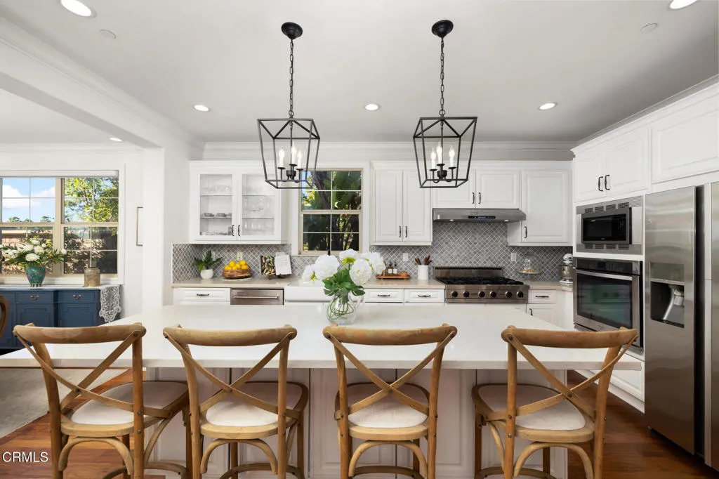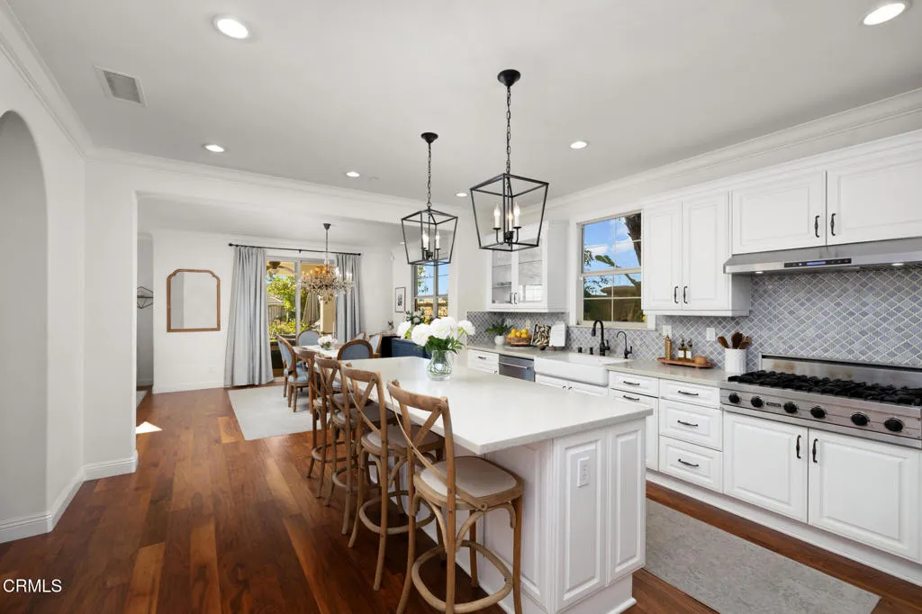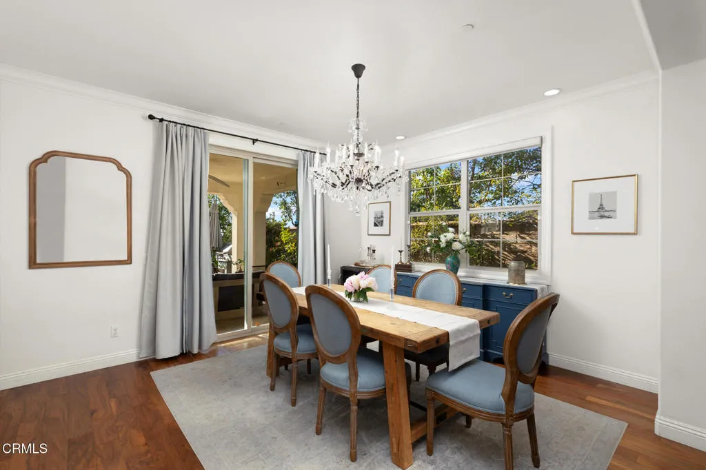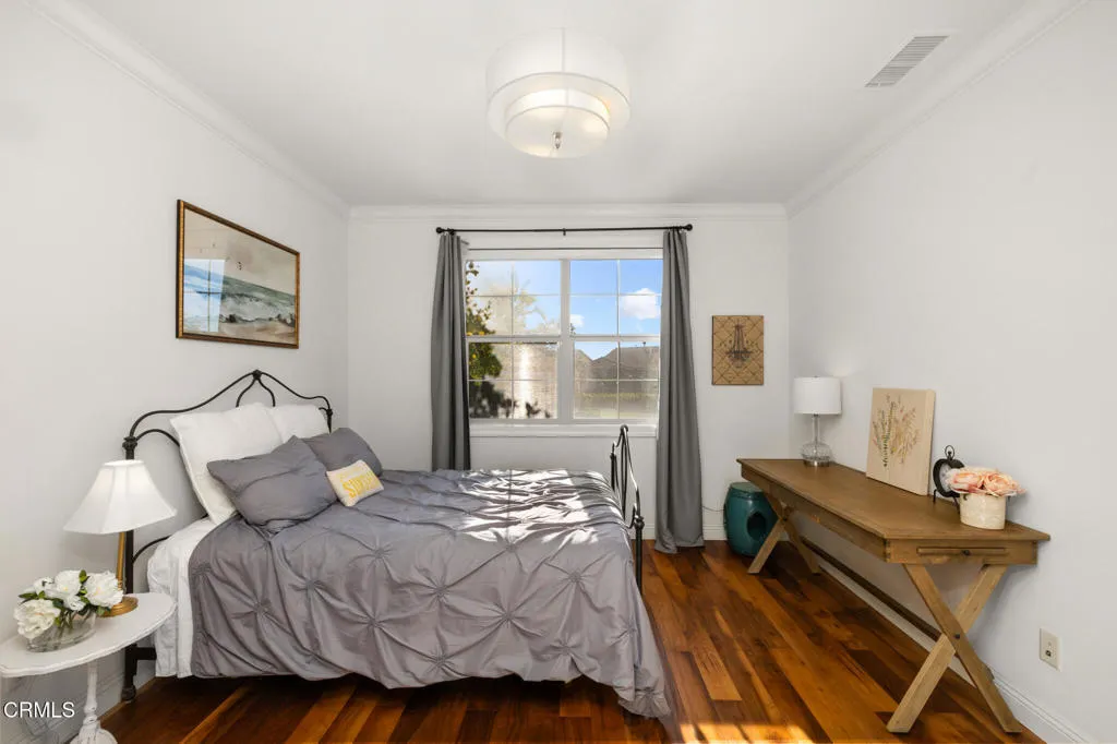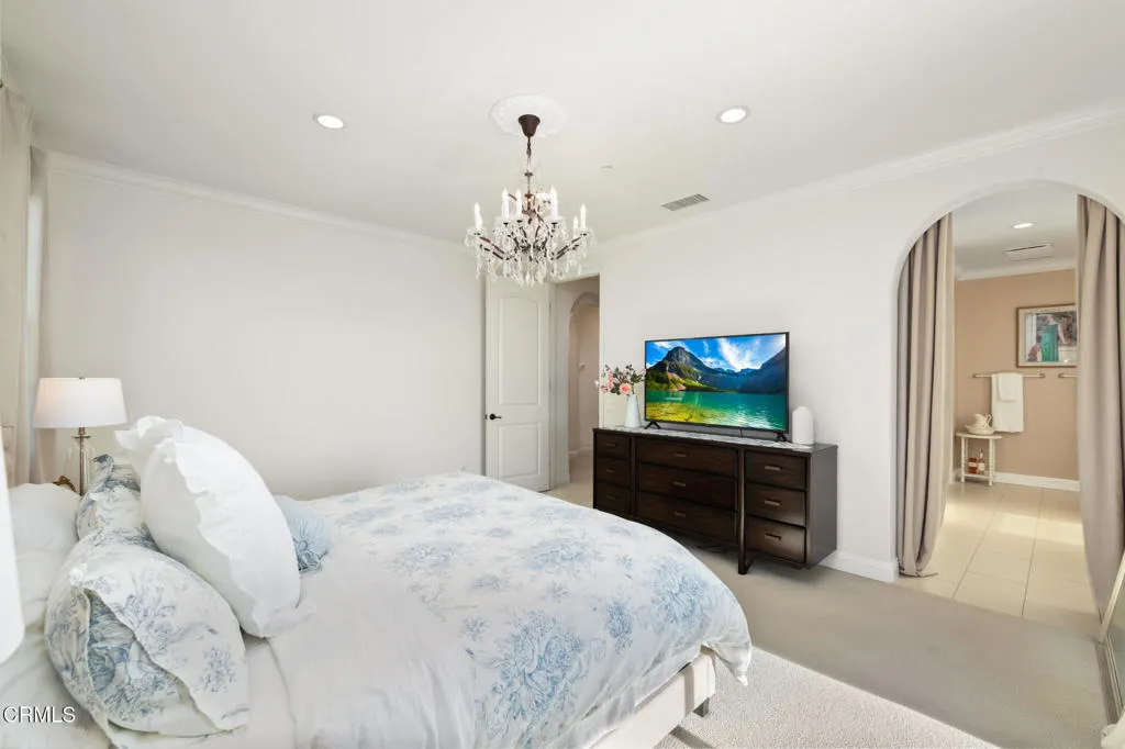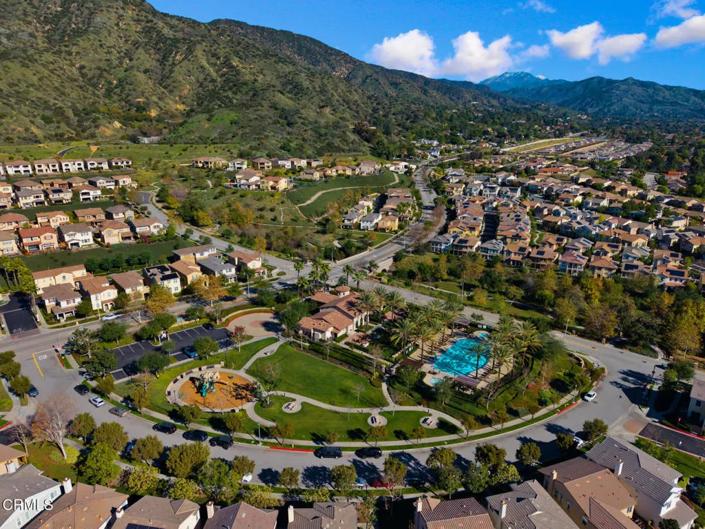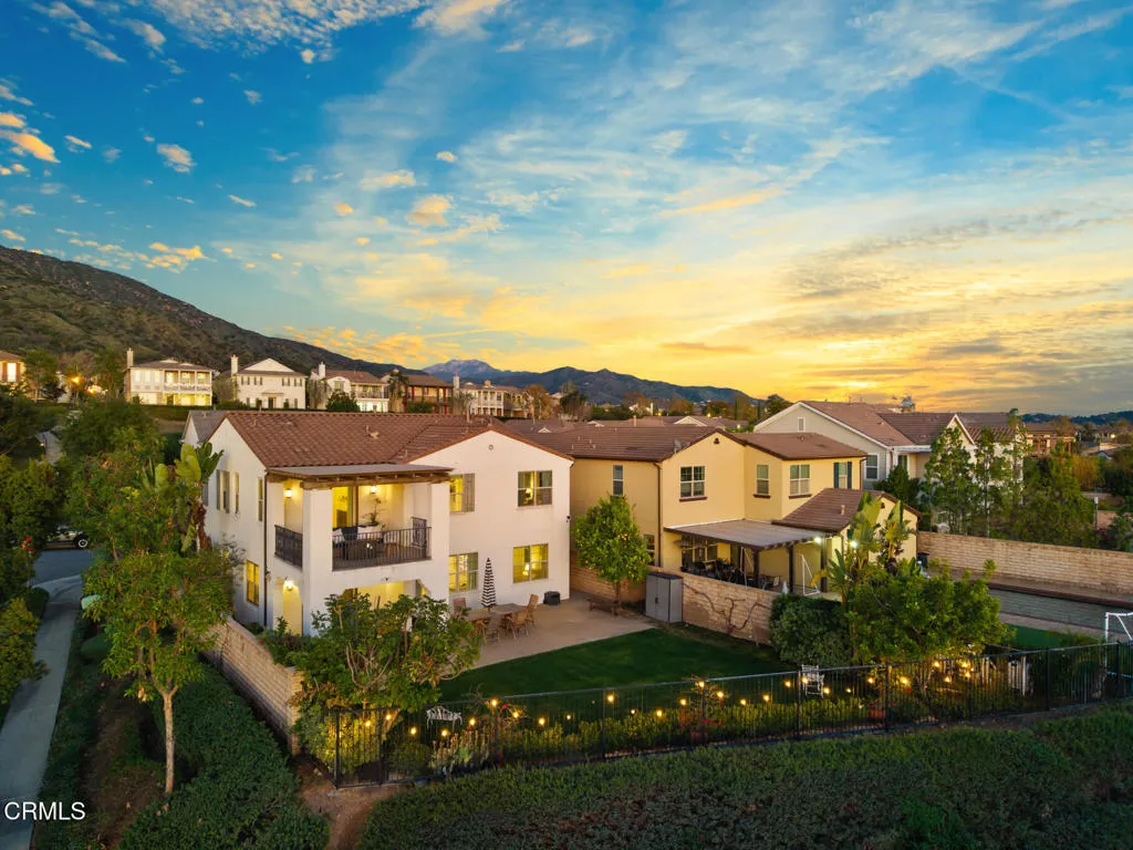 Don't miss the opportunity to own this stunning, upgraded gem on a premium corner lot in the highly sought-after Rosedale Community, offering breathtaking sunset, city lights, and mountain views. This Spanish-inspired residence showcases elegant arches, high ceilings, and expansive windows that fill the home with abundant natural light. This rare and desirable floor plan features 4 bedrooms and 3.5 bathrooms, including two primary suites--one conveniently located on the main level and another upstairs. The main floor welcomes you with a sophisticated sitting room accented by a main arched window with European oak floors before entering an open-concept layout that seamlessly connects the remodeled kitchen, dining area, and family room with updated powder room and a main-level ensuite bedroom. Upstairs offers a spacious den, a luxurious primary suite, two generously sized bedrooms, and a large laundry room for added convenience. The upstairs primary suite features a spa-like bathroom with a separate soaking tub and shower, walk-in closet, and direct access to a rare covered patio, ideal for enjoying nightly sunsets and relaxing by the outdoor firepit. The 4th bedroom is the largest room and is ready to be customized into another suite. The home has been thoughtfully upgraded throughout with high-end finishes, including crown molding, custom window shades, designer light fixtures, wall sconces, and timeless Restoration Hardware chandeliers. The kitchen has been meticulously renovated with modern countertops, stylish backsplash, oversized island, and Viking range top. Additiona