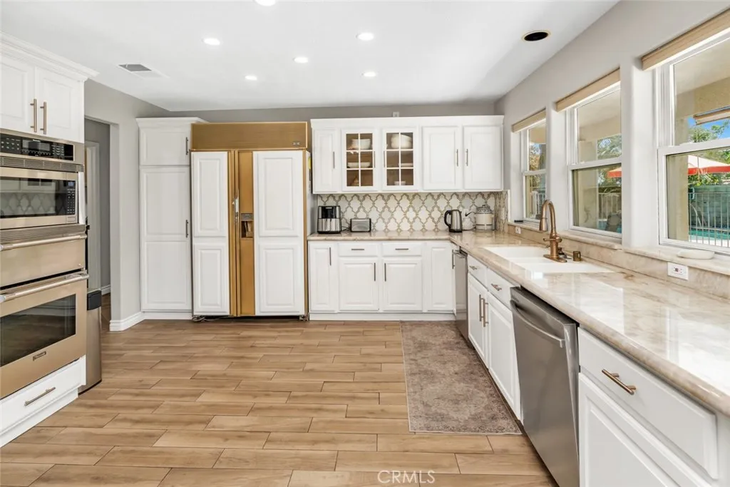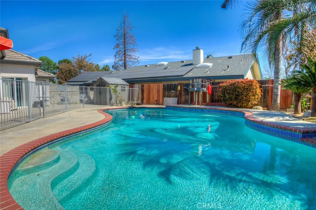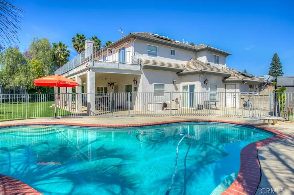 East Bakersfield beautiful two-story home featuring 6 bedrooms, a bonus room, 4.5 bathrooms, a 3-car garage, and RV parking. This spacious home offers a formal dining room, formal living room, and an open-concept great room with a fireplace facing the kitchen. The kitchen features custom cabinets, stainless steel appliances, and a stylish backsplash. There is a downstairs bedroom with a Jack and Jill bathroom, perfect for guests. Upstairs offers five spacious bedrooms, including one used as an office with built-in cabinetry. The primary suite has access to a large balcony with retractable shade and an en-suite bath with separate shower, jetted tub, double sinks, and a walk-in closet. The huge backyard features a covered patio with cordless sunshades, a pool with security fence, play area, gas hookup for BBQ, and plenty of space for entertaining.