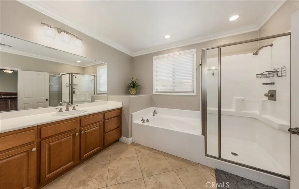Welcome to 1244 Sea Lavender Lane! Located in the Sundance Community of Beaumont, this beautifully maintained 3-bedroom, 2-bathroom home offers just over 2,400 square feet of well-designed living space that blends comfort, style, and everyday functionality. Inside, a spacious open concept living area flows effortlessly into the kitchen, perfect for both casual living and entertaining. A formal dining room adds a touch of elegance, while a bonus office provides flexibility for remote work or hobbies. Upgraded details like crown molding and classic baseboards add charm and sophistication throughout. The primary suite is a peaceful retreat with two closets, additional storage space, and a spa-like ensuite bathroom featuring dual vanities, a soaking tub, and direct access to the backyard. Down the hall, two nicely sized bedrooms and a full bathroom offer plenty of space and privacy for family or guests. Additional features include an indoor laundry room and a tandem garage with overhead storage, perfect for extra gear or workspace. Step outside into the expansive backyard, complete with raised garden beds and thriving grape vines, creating a lush, relaxing setting ideal for outdoor living and entertaining. Just a short stroll away, enjoy access to one of several community recreation areas featuring a play area, basketball courts, and open green space - perfect for fun, fitness, and relaxation. With its spacious layout, stylish finishes, and prime location, this move-in-ready home is just waiting for you to make it your own!