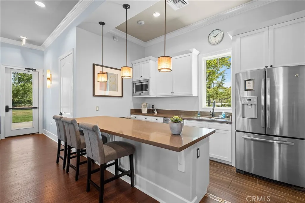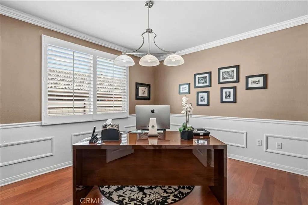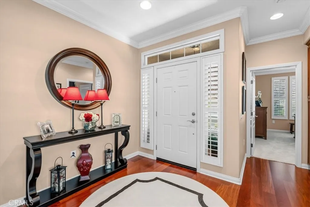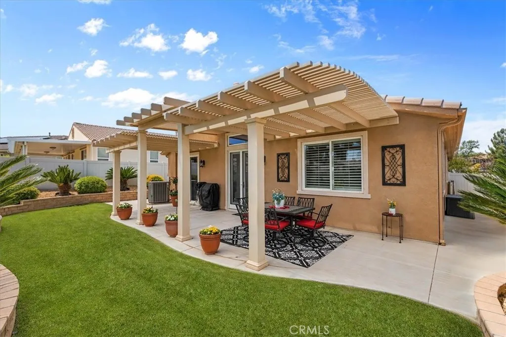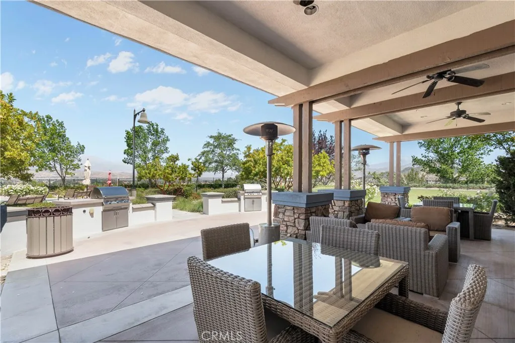 Beautifully Upgraded Heritage III Model with mountain views. Welcome to one of Four Seasons thoughtfully upgraded homes where designer details, effortless single-story living, and resort-style amenities come together in one exceptional package. From the moment you enter, the quality is undeniable. Rich Brazilian cherry engineered hardwood flooring, crown molding, wainscoting, plantation shutters, and recessed lighting create an atmosphere of refined elegance throughout. The spacious great room centers around a cozy fireplace flanked by custom built-ins that opens seamlessly to the backyard through custom French doors filling the home with natural light and an easy indoor-outdoor flow. The gourmet kitchen is a true entertainer's delight, featuring a generous island with seating, granite countertops, stainless steel appliances, a custom tile backsplash, and an abundance of cabinetry. It opens directly to the family room, making hosting family and friends a natural pleasure. Just off the entry, a private den/office with double-door entry, crown molding, and wainscoting offers a quiet, distinguished space ideal for reading, hobbies, or working from home. The primary suite is a genuine retreat spacious and serene, with a soaking tub, separate walk-in shower, and generous walk-in closets designed for comfortable everyday living. The secondary bedroom is well-sized and bright, providing a welcoming space for visiting guests. A dedicated laundry room with sink and additional storage rounds out the practical, thoughtful floor plan. Step outside to your private backyard oasis, wh