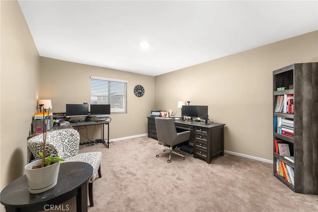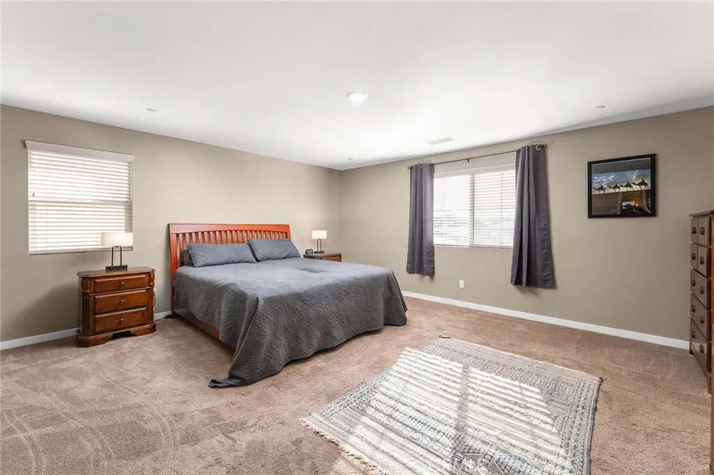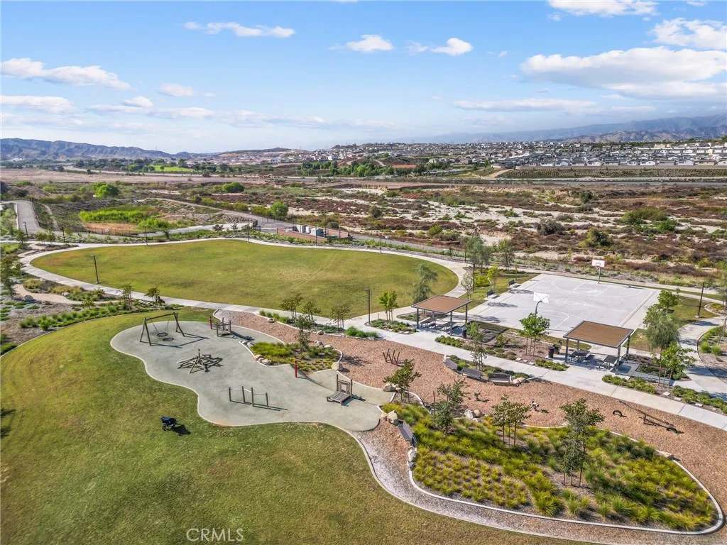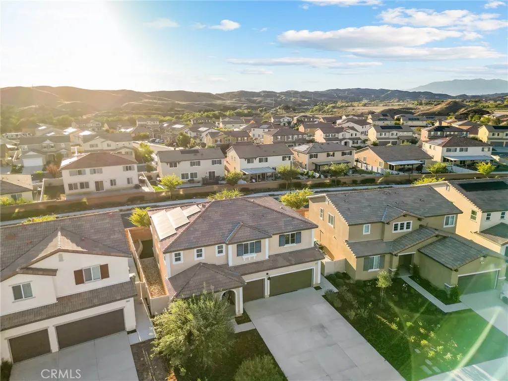 Stunning 5-Bedroom, 3-bathroom home offering 3,266 sq. ft. of elegant living space in the Prestigious Olivewood Community by Taylor Morrison! Designed with comfort, functionality, and timeless style in mind, this energy-efficient home with paid solar is truly move-in ready. Step inside to an open-concept floor plan that showcases a bright and airy living area, luxury vinyl plank flooring, and a chef-inspired kitchen with timeless white cabinetry, granite countertops, a large center island, and a double oven, perfect for entertaining and everyday living. The first floor features a full bedroom and bath, ideal for guests or multi-generational living, plus a bonus room that can be used as a home office, gym, or playroom. Upstairs, the spacious loft provides a versatile area for a media room or secondary living space. Retreat to the luxurious primary suite, featuring a spa-like bathroom and a generous walk-in closet. All bedrooms offer comfort and space for family and guests alike. The backyard is fully landscaped and designed for low maintenance enjoyment, featuring an Alumawood-covered patio, artificial turf, river rock accents, and included patio furniture, perfect for relaxing or hosting gatherings, plenty of privacy with no neighbors behind. The 3-car garage provides plenty of parking and extra storage for all your needs. Enjoy resort-style HOA amenities, including a sparkling pool and spa, community park, dog park, picnic area, basketball court, and clubhouse-all within walking distance. Dont miss this incredible opportunity to own a Taylor Morrison masterpiece in Olivewo