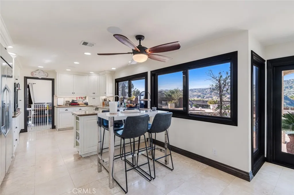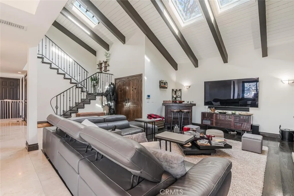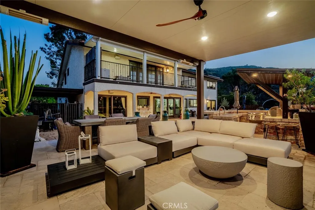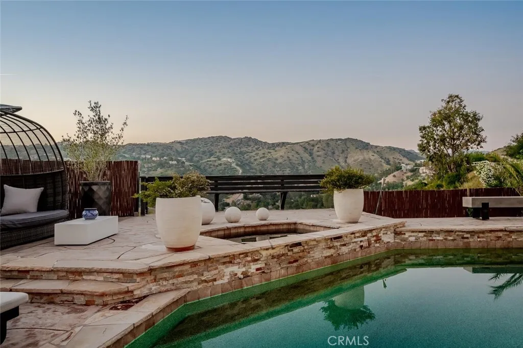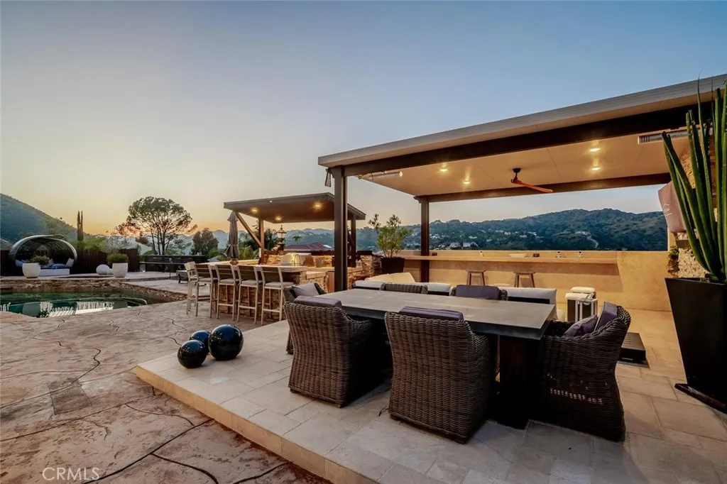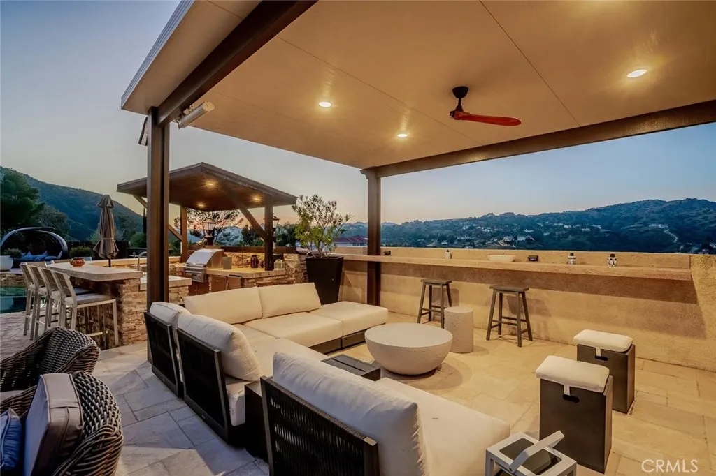 Designed for those who live exceptionally well, this Bell Canyon residence reflects a lifestyle where connection, comfort, and experience take precedence. From the moment of arrival, the intention is clear: open sightlines, effortless flow, and a seamless relationship between indoor and outdoor living create an environment that naturally invites gathering, relaxation, and celebration. Panoramic views serve as a constant backdrop, transforming everyday moments into something extraordinary. Expansive walls of glass dissolve boundaries, allowing light-filled interiors to extend outward to the horizon. Updated finishes and a reimagined floorplan ensure the home feels current, functional, and quietly refined, while integrated smart home featuresincluding intuitive lighting, climate, and security systemsbring modern efficiency to every corner of the property. At the heart of the home is a fully integrated indoor-outdoor experience. Large openings lead to a resort-style backyard where an inviting pool serves as the focal point for recreation. A thoughtfully designed outdoor kitchen and covered living areacomplete with heating and a mounted televisionoffer a true extension of the home, perfectly suited for vibrant evenings under the stars. Entertaining is further elevated by a full sit-down bar with a garage-style pass-through window, encouraging fluid interaction between interior and exterior spaces. Beyond the gates, life within Bell Canyon offers a rare sense of connection. This guard-gated enclave provides a grounded rhythm of living with access to scenic trail systems, tennis