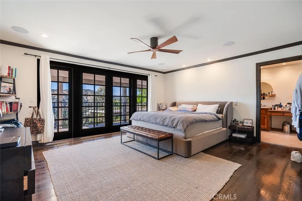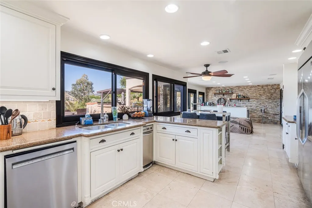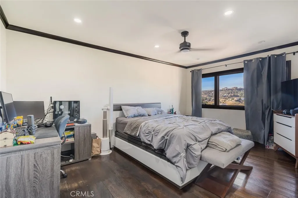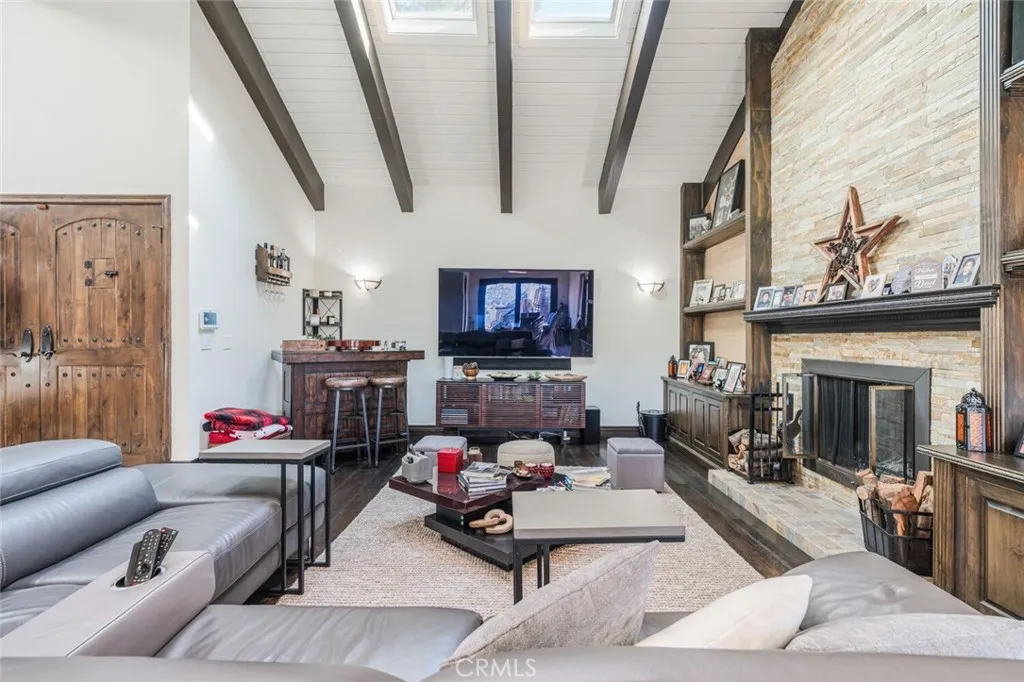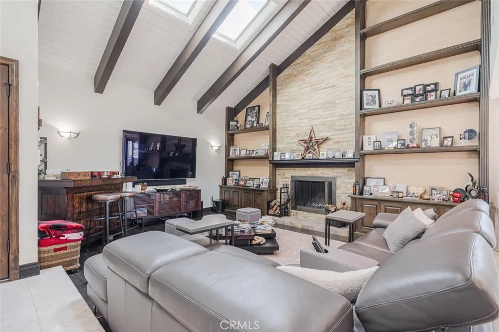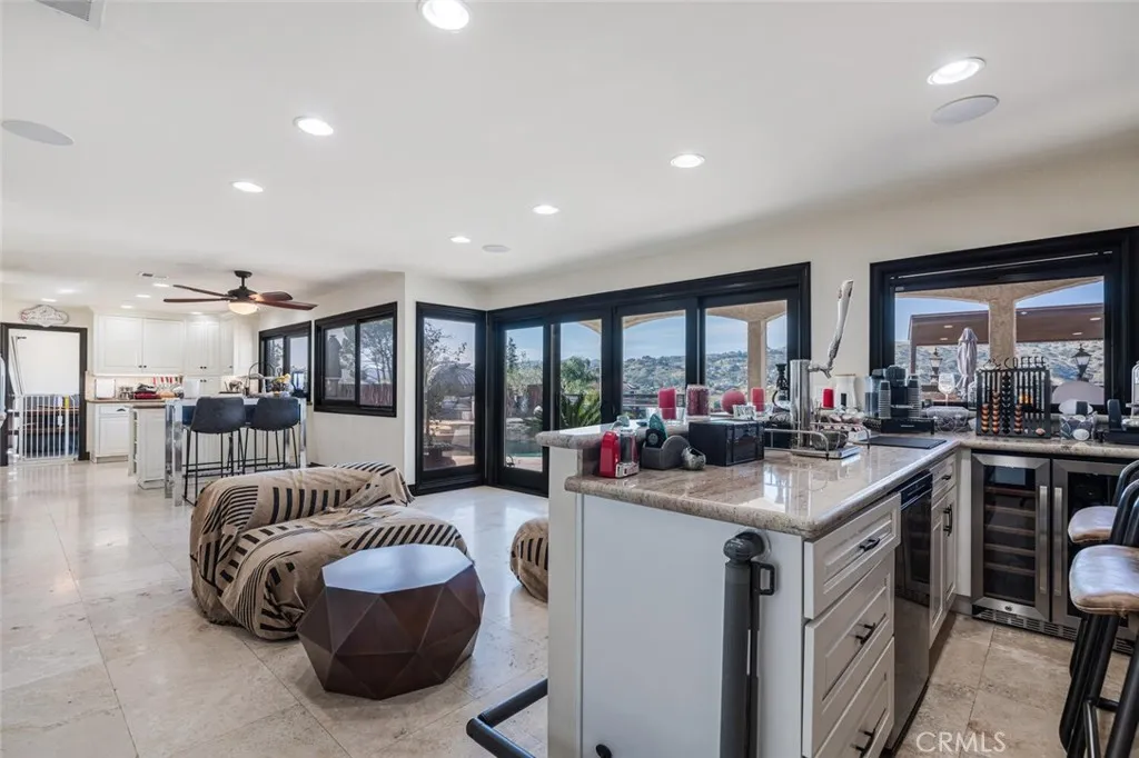 Designed for those who live exceptionally well, this Bell Canyon residence reflects a lifestyle where connection, comfort, and experience take precedence. From the moment of arrival, the intention is clear: open sightlines, effortless flow, and a seamless relationship between indoor and outdoor living create an environment that naturally invites gathering, relaxation, and celebration. Panoramic views serve as a constant backdrop, transforming everyday moments into something extraordinary. Expansive walls of glass dissolve boundaries, allowing light-filled interiors to extend outward to the horizon. Updated finishes and a reimagined floorplan ensure the home feels current, functional, and quietly refined, while integrated smart home featuresincluding intuitive lighting, climate, and security systemsbring modern efficiency to every corner of the property. At the heart of the home is a fully integrated indoor-outdoor experience. Large openings lead to a resort-style backyard where an inviting pool serves as the focal point for recreation. A thoughtfully designed outdoor kitchen and covered living areacomplete with heating and a mounted televisionoffer a true extension of the home, perfectly suited for vibrant evenings under the stars. Entertaining is further elevated by a full sit-down bar with a garage-style pass-through window, encouraging fluid interaction between interior and exterior spaces. Beyond the gates, life within Bell Canyon offers a rare sense of connection. This guard-gated enclave provides a grounded rhythm of living with access to scenic trail systems, tennis