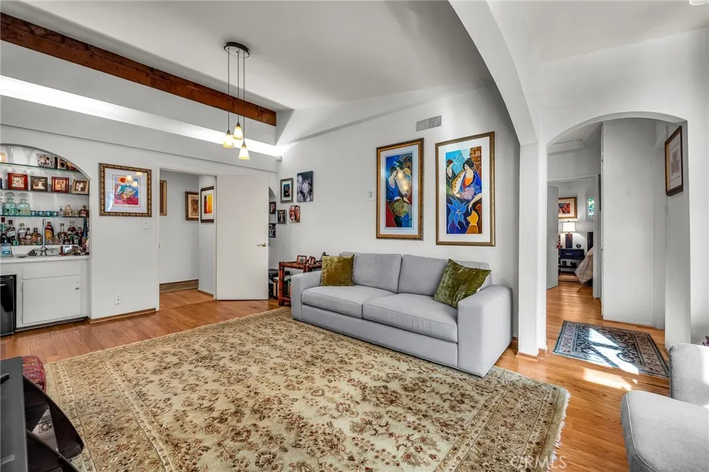 Nestled in a quiet pocket of the Beverly Hills Post Office area, this inviting 3 bedroom, 2.5 bath home offers multiple living spaces designed for both everyday comfort and effortless entertaining. The spacious kitchen features an eat in dining area along with a separate enclosed dining room, ideal for intimate meals or flexible use as a home office or den. The primary suite is privately positioned apart from the secondary bedrooms, creating a thoughtful layout for separation and retreat. French doors from the living room and kitchen open to a private backyard and patio, offering a serene setting that feels removed from the city yet remains just minutes from Beverly Hills. Additional features include a dedicated laundry area, a generous two car garage, and a half moon driveway with ample guest parking.