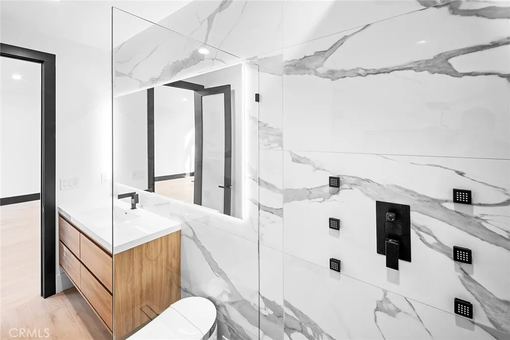 Beautiful New construction to be completed October 2024. This Modern home has 4 bedrooms, 3 bathrooms. Amenities include wall to wall bathroom tiles, smart toilets, bluetooth capable bathroom fans, floating vanities, extra large backlit mirrors, large minimalistic glass doors for the extra large showers, waterfall countertops in the Kitchen, modern appliances, dedicated coffee bar area & many more.
